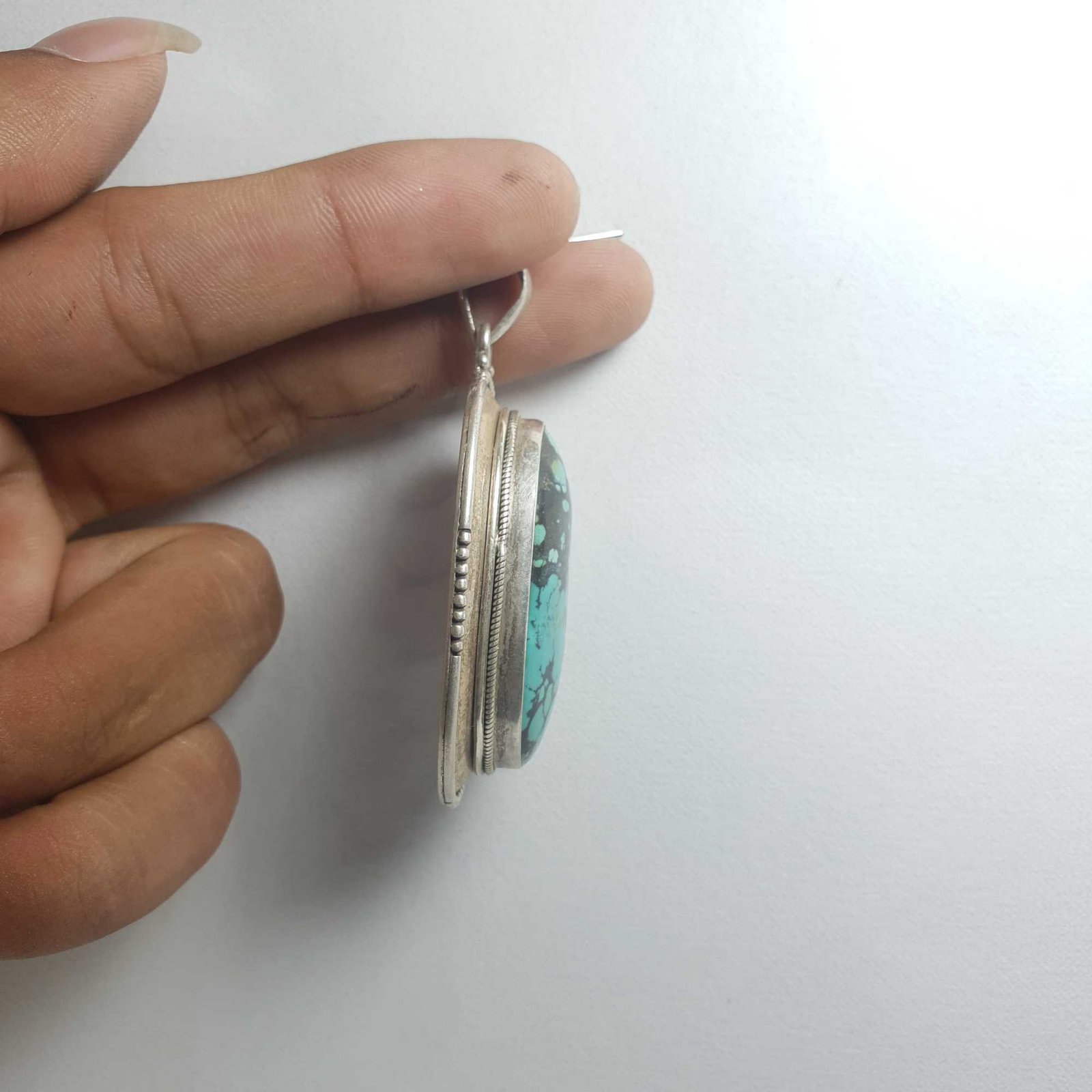 A Nepali silver pendant is a beautiful piece of jewelry that is often adorned with semi-precious stones and intricate designs. These pendants are often made by skilled artisans in Nepal who use traditional techniques and designs that have been passed down through generations.