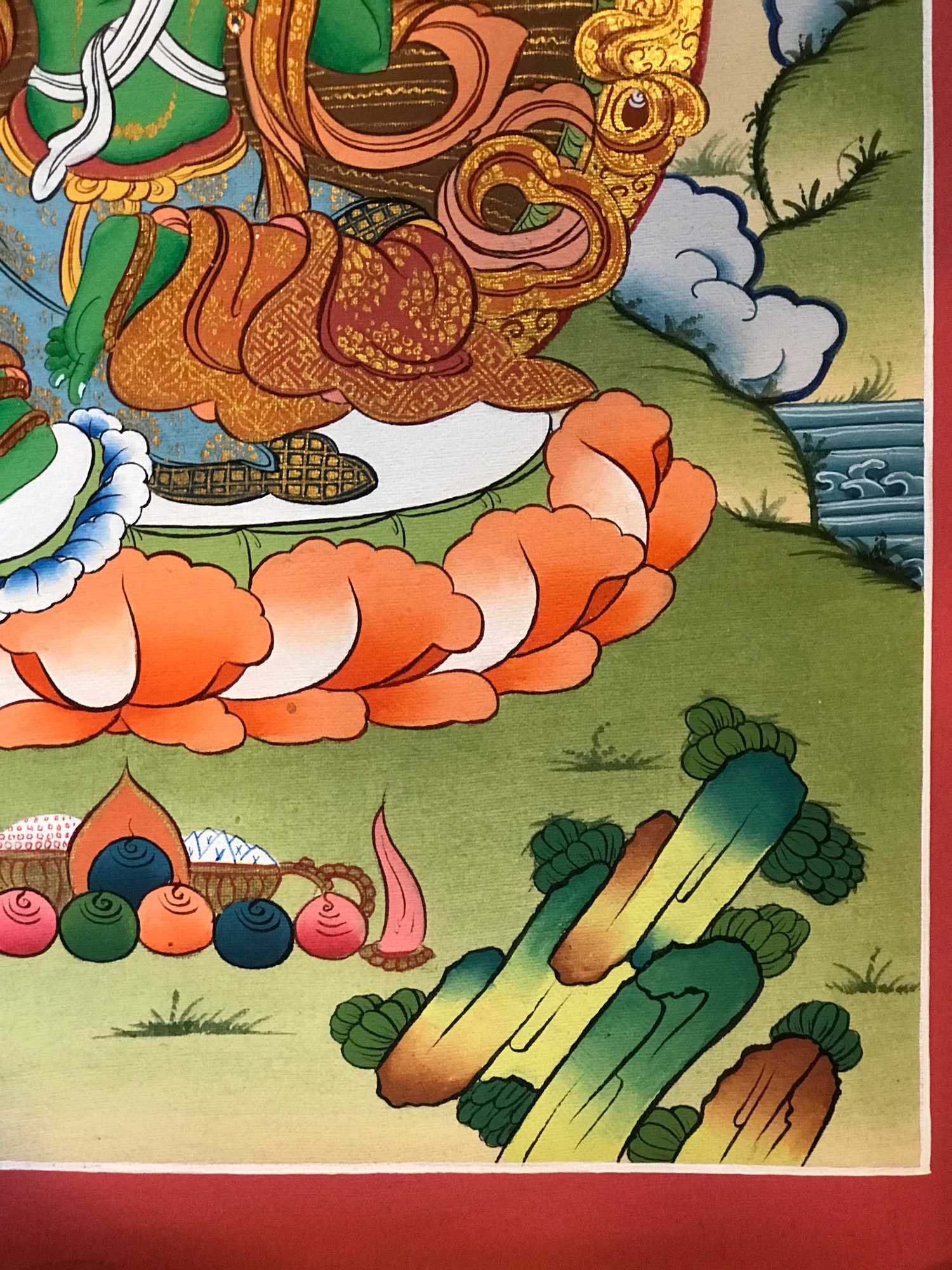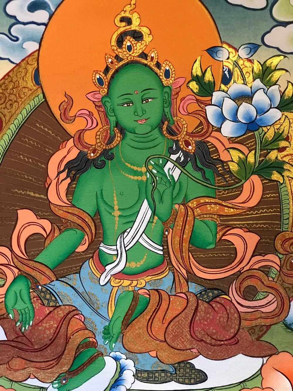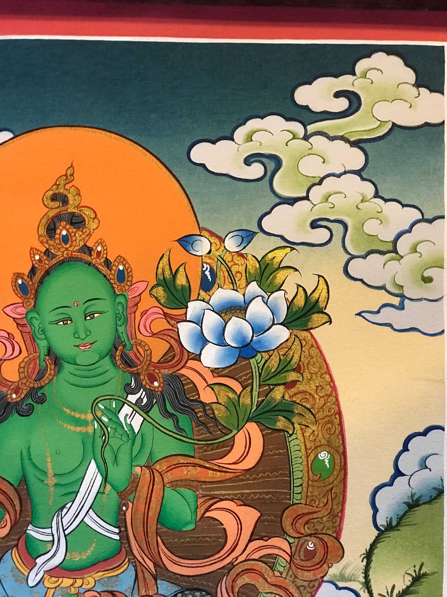 Tibetan Thangka of Green Tara , Goddess of Compassion, Protection, and Swift Action