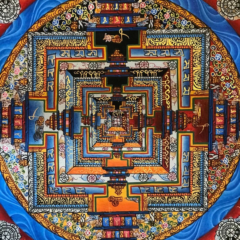 Tibetan Thangka of Kalachakra Mandala, Blue |