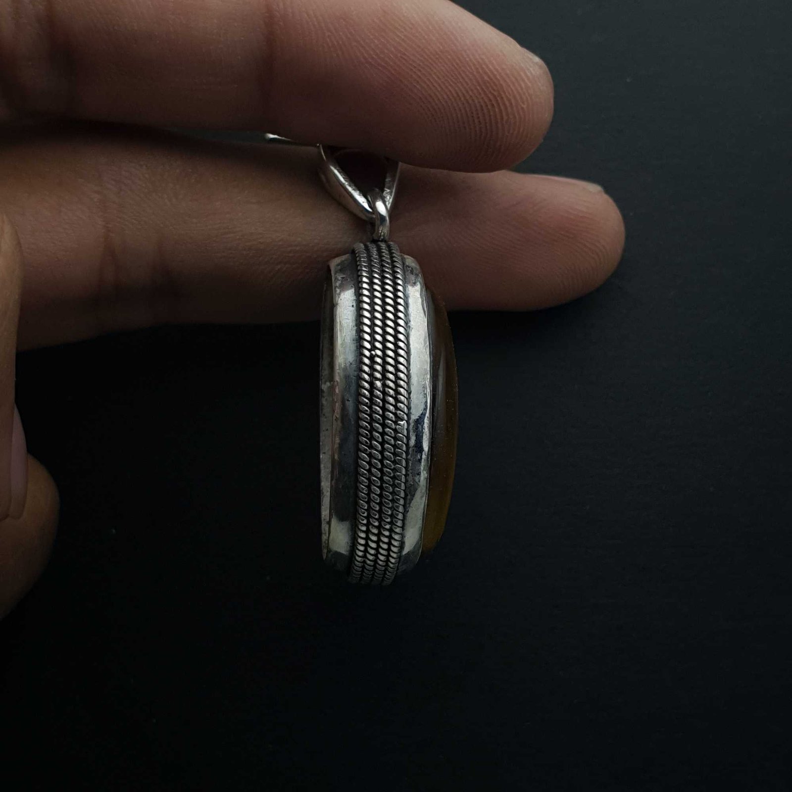 A Nepali silver pendant is a beautiful piece of jewelry that is often adorned with semi-precious stones and intricate designs. These pendants are often made by skilled artisans in Nepal who use traditional techniques and designs that have been passed down through generations.