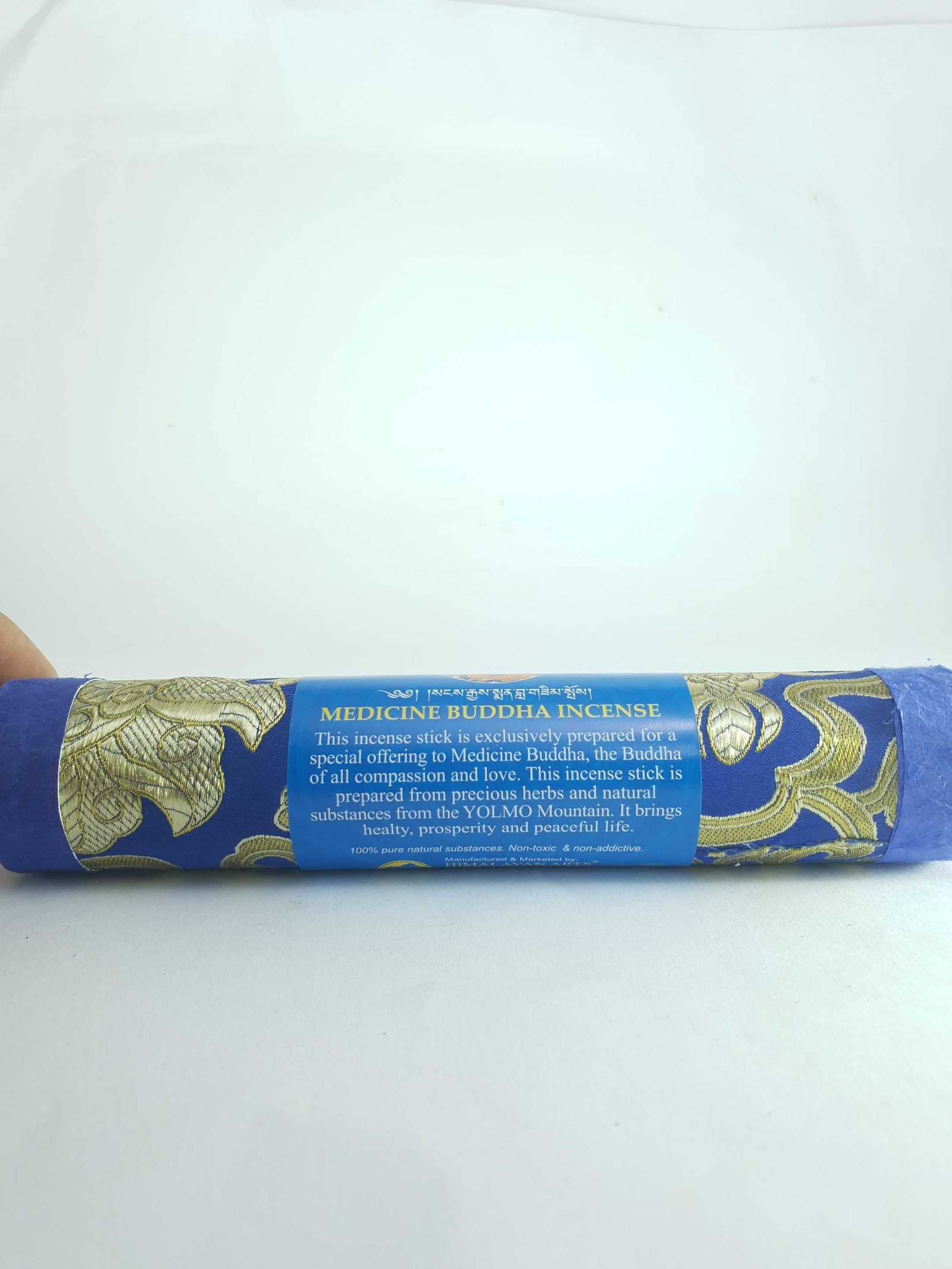 : Brief IntroductionBhaisajyaguru is known as the Medicine Buddha. He is also called the Healing Buddha. It is said that he dispenses spiritual medicine when properly worshipped. There is even a belief that an efficacious cure may be accomplished by merely touching his image. In Tibet, he may be represented either as a Buddha or as a Bodhisattva. As a Buddha, he exhibits the urn (a small round bulge or protuberance above the bridge of the nose), which is the fourth superior mark of a Buddha, and the Ushnisha (a bulge or protuberance on the top of the Buddha's skull), which is the first superior mark of a Buddha. He has short and curly hair, wears a monastic robe, and is seated with his legs crossed. His left hand, lying in his lap in a meditation mudra, usually holds the medicine bowl, while his right hand, in a charity mudra, holds either a branch with fruit or the fruit alone of the myrobalan, a medicinal plant found in India and other tropical countries. Read More