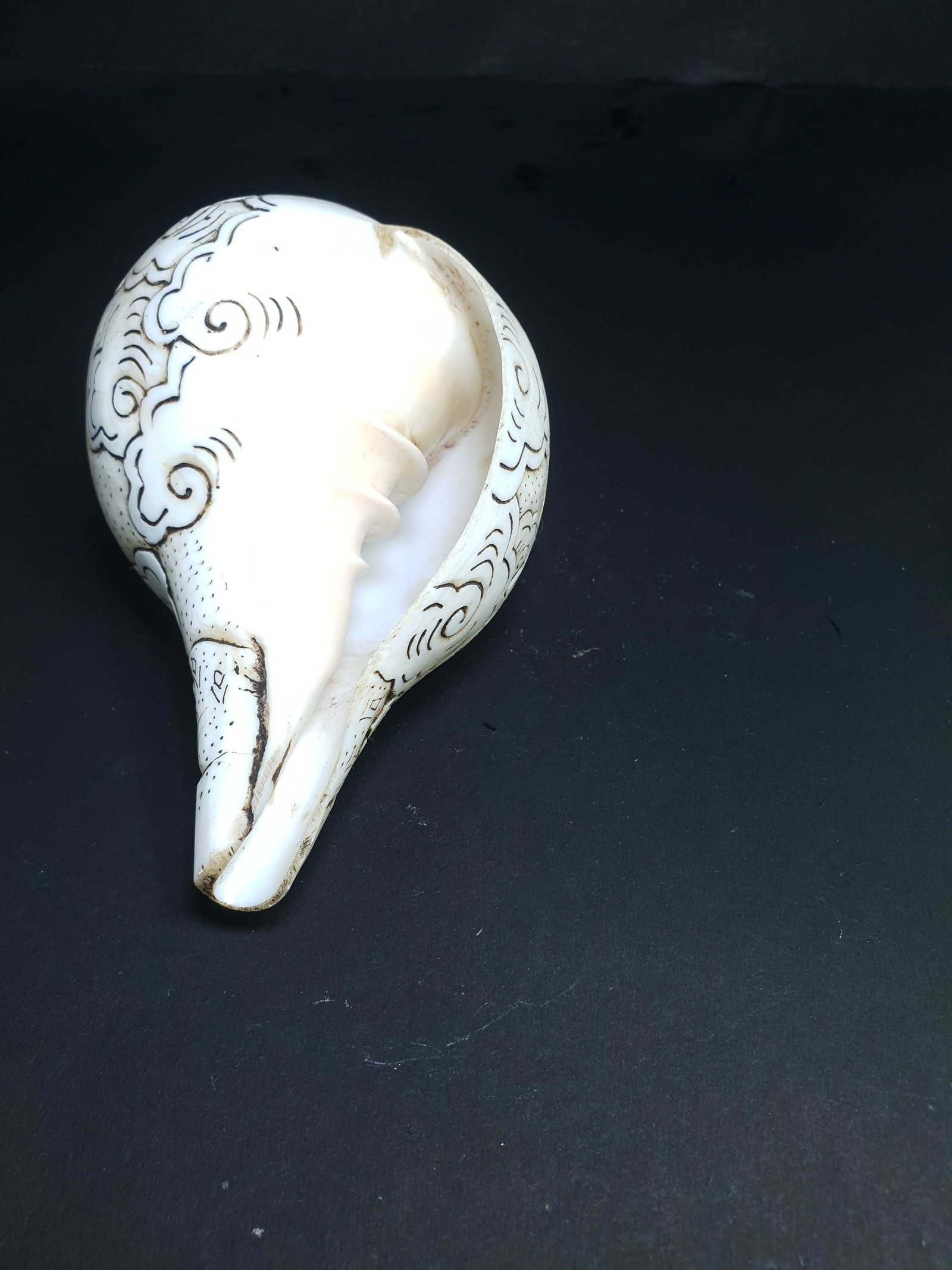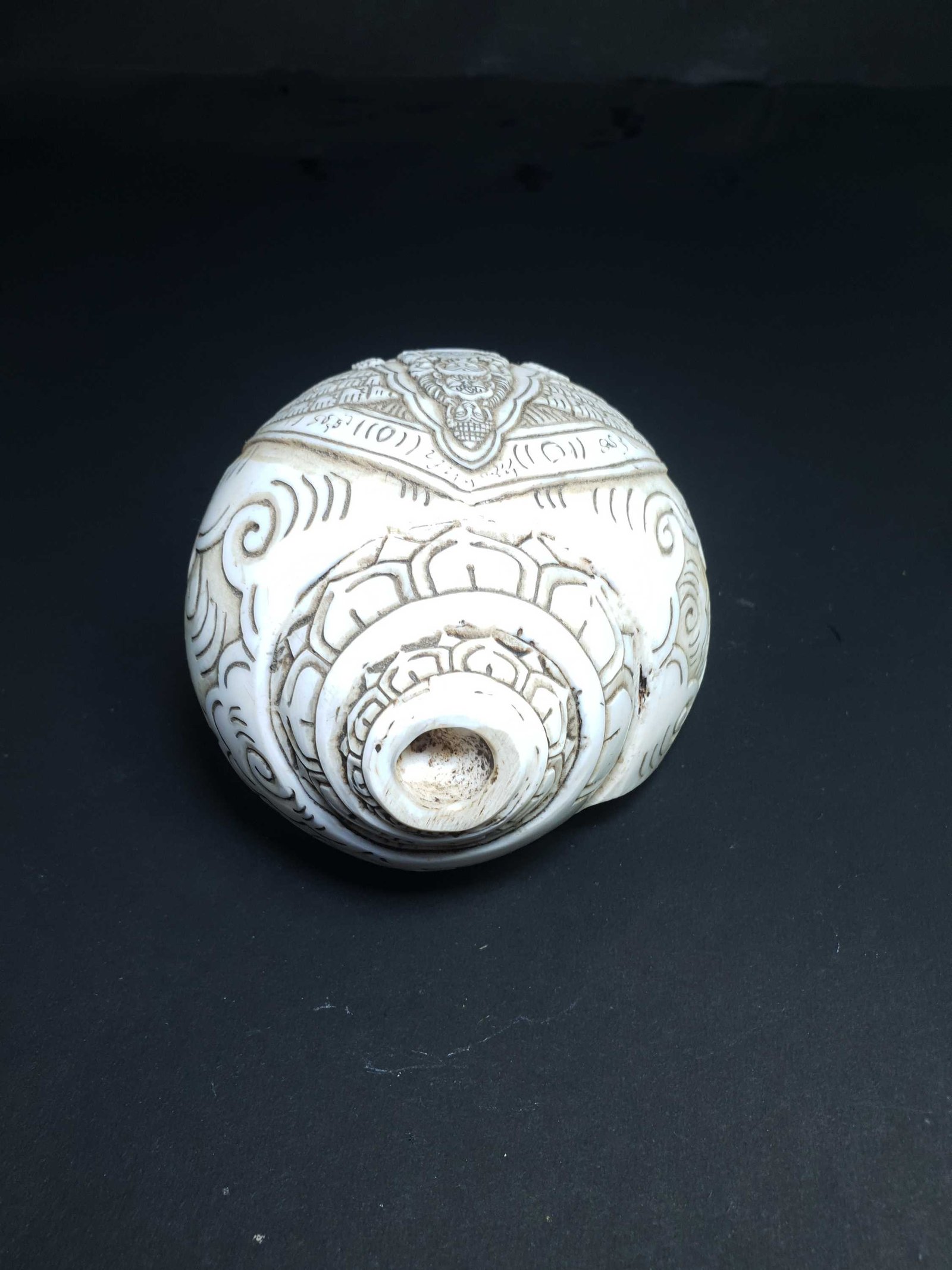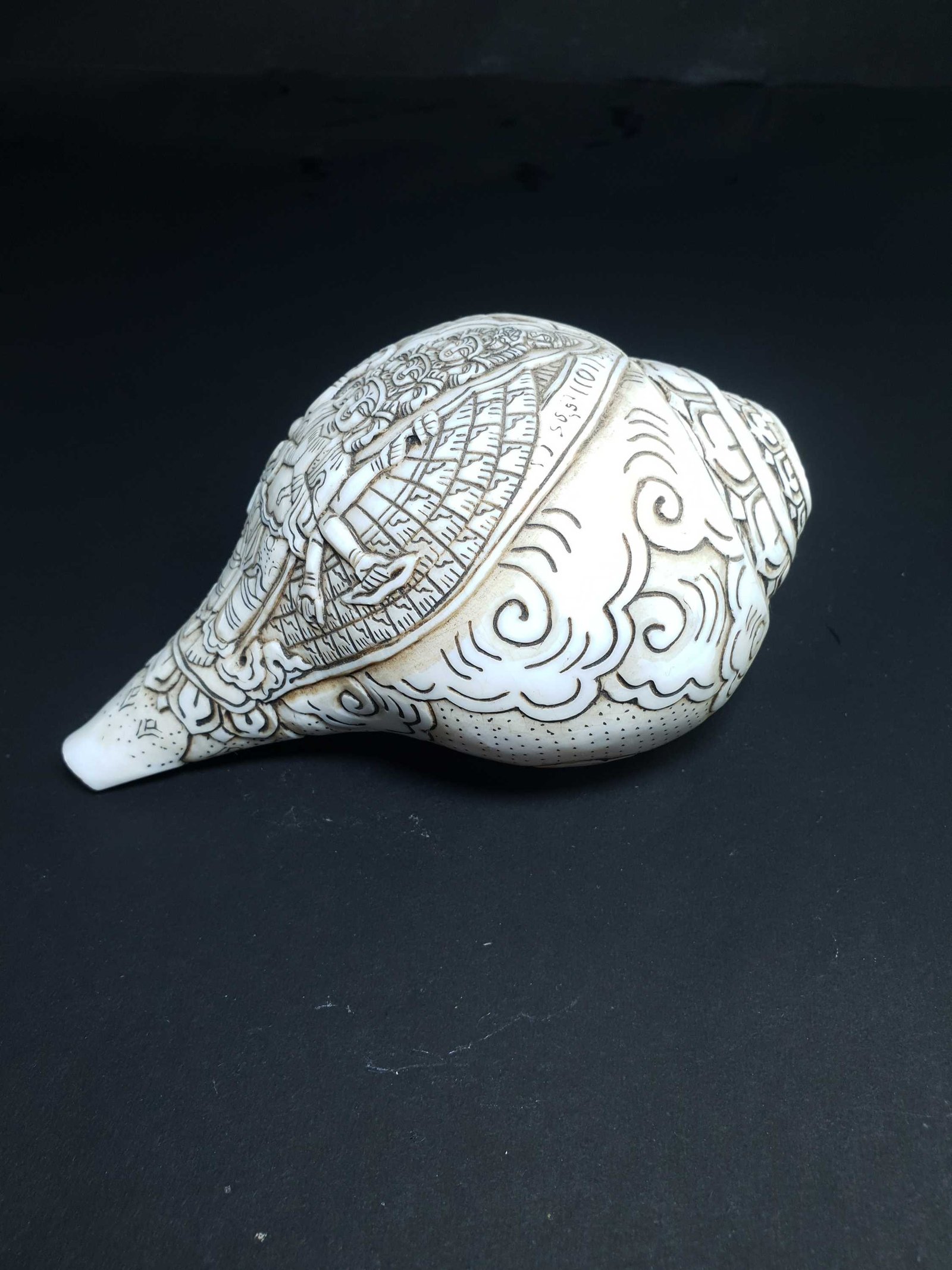 Tibetan Conch Shell with Sahasrabhuja Avalokitesvara Hand Carved