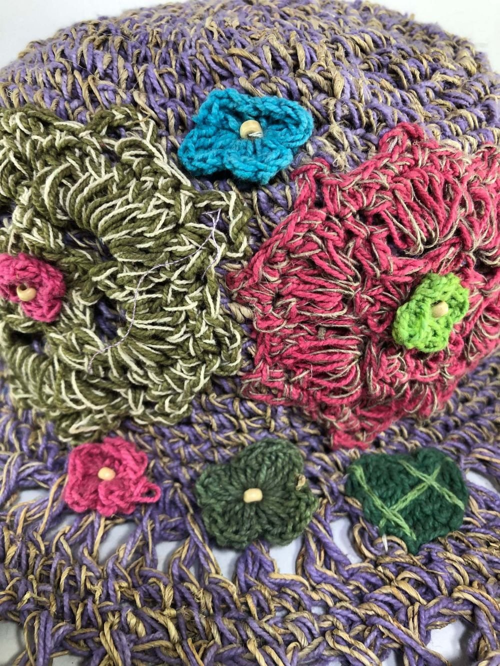 Hemp Cap, Hand Knitted, Free Size |