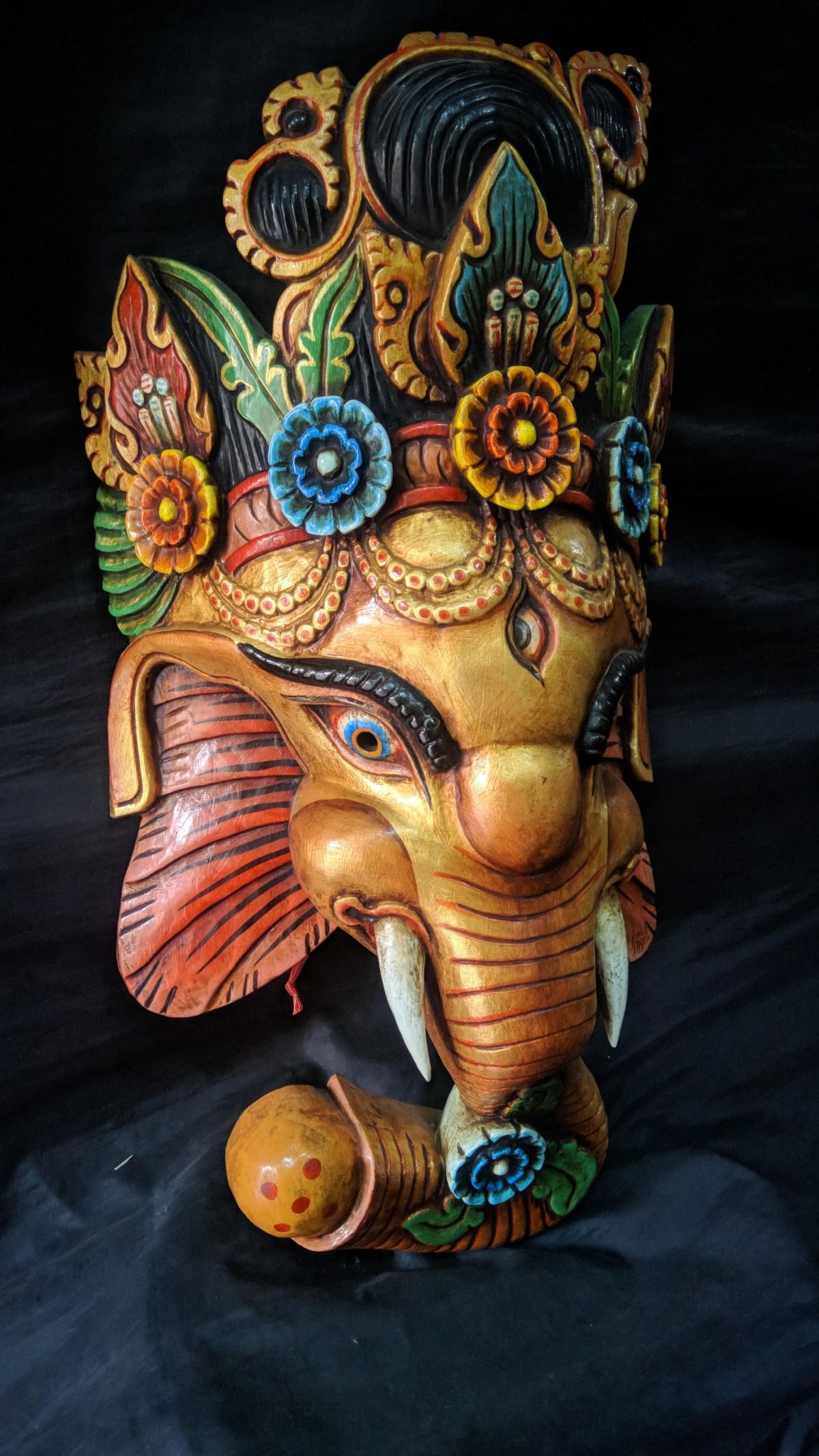 this Ganesh mask is Nepali handmade mask and we are Introducing our exquisite collection of Nepali handmade hand-carved wooden Buddhist masks and wall hangings, meticulously crafted by skilled artisans. Each piece in this collection reflects the rich cultural heritage and spiritual significance of Nepal. These masks and wall hangings are not just decorative pieces but hold deep symbolic meaning, making them perfect for adding an authentic touch to your living spaces or meditation rooms. Read More