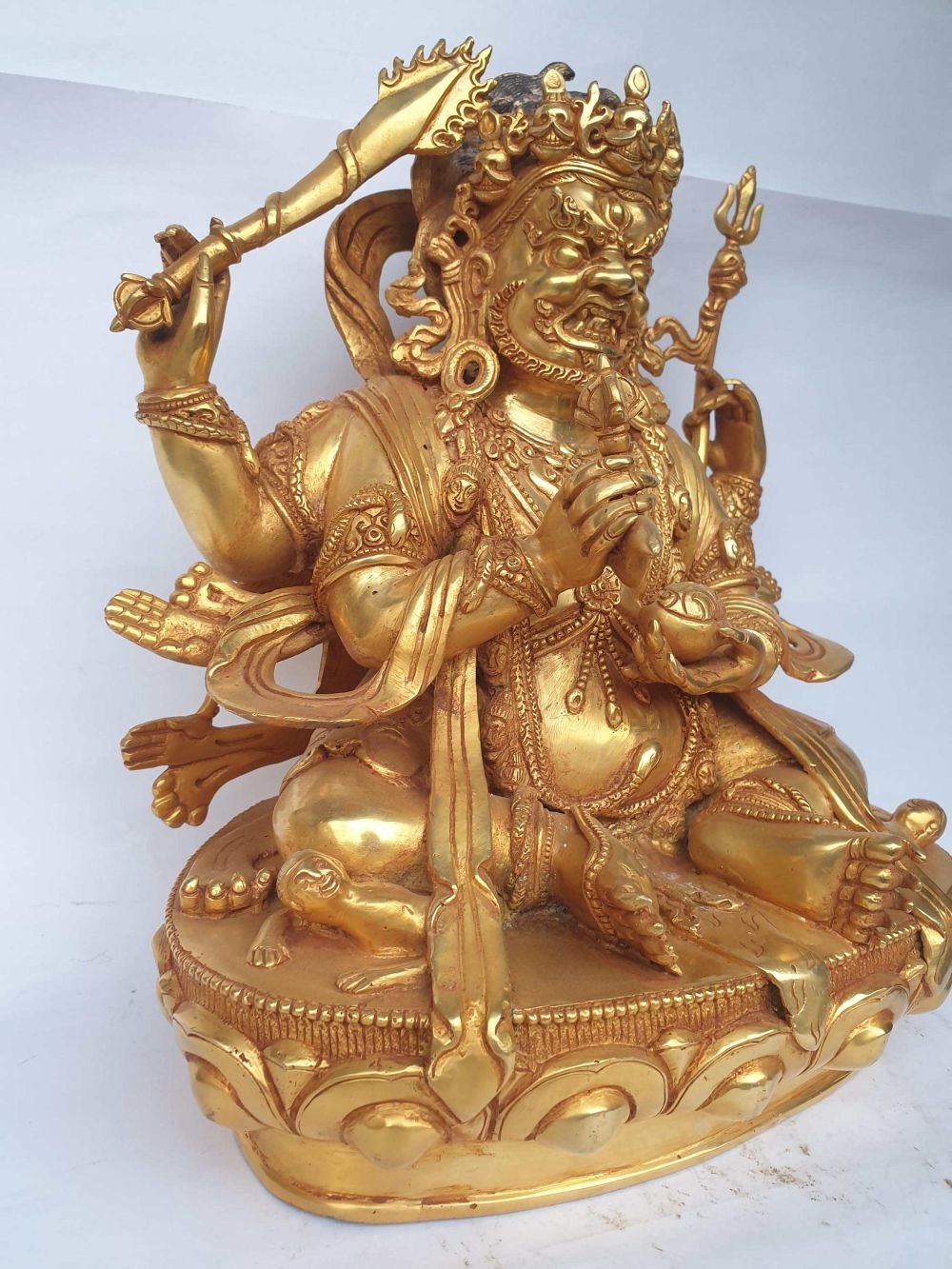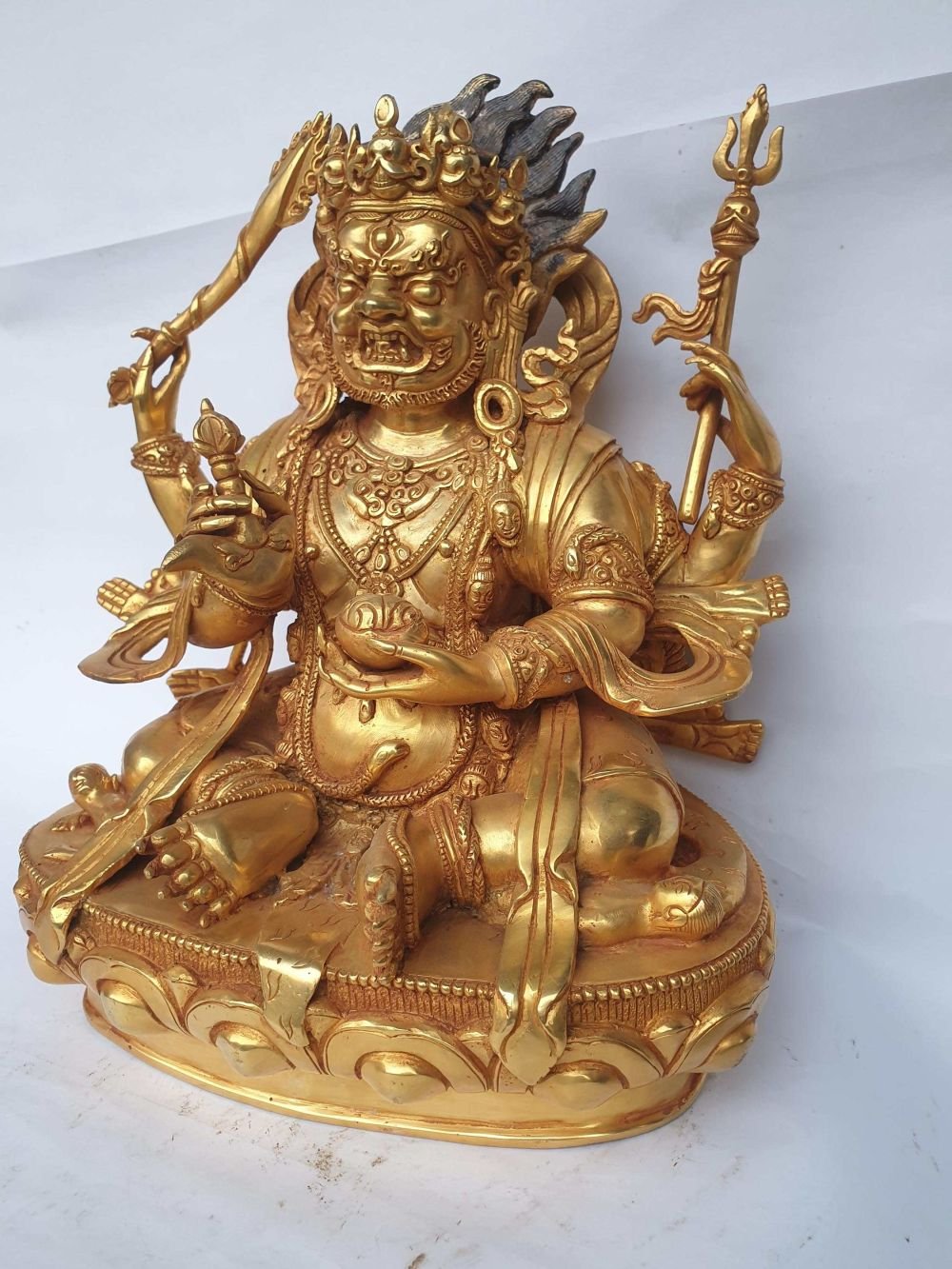 HQ, Sitting Mahakala - Four Arms Statue, Kalu Awale Copy, Full Gold Plated , Four-armed protector, destroys obstacles and negativity