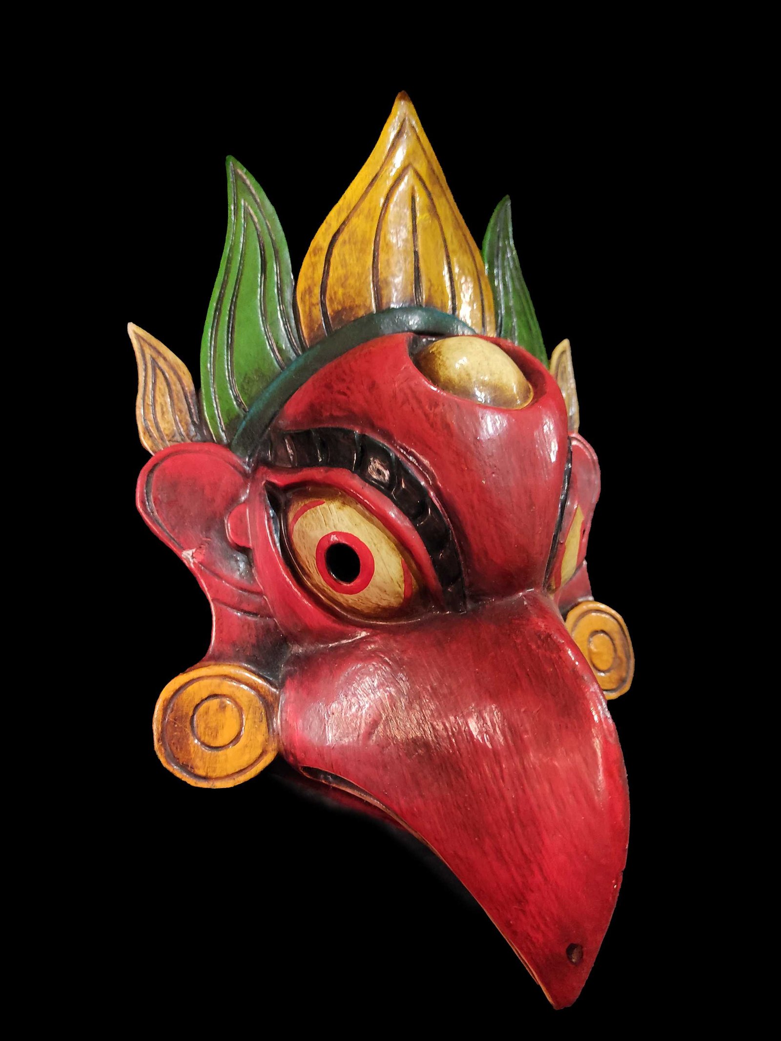 Garuda Mask, Handmade Wooden Mask of Garuda, Painted Red, Poplar Wood , Divine Eagle, Protector and Enemy of Evil Forces