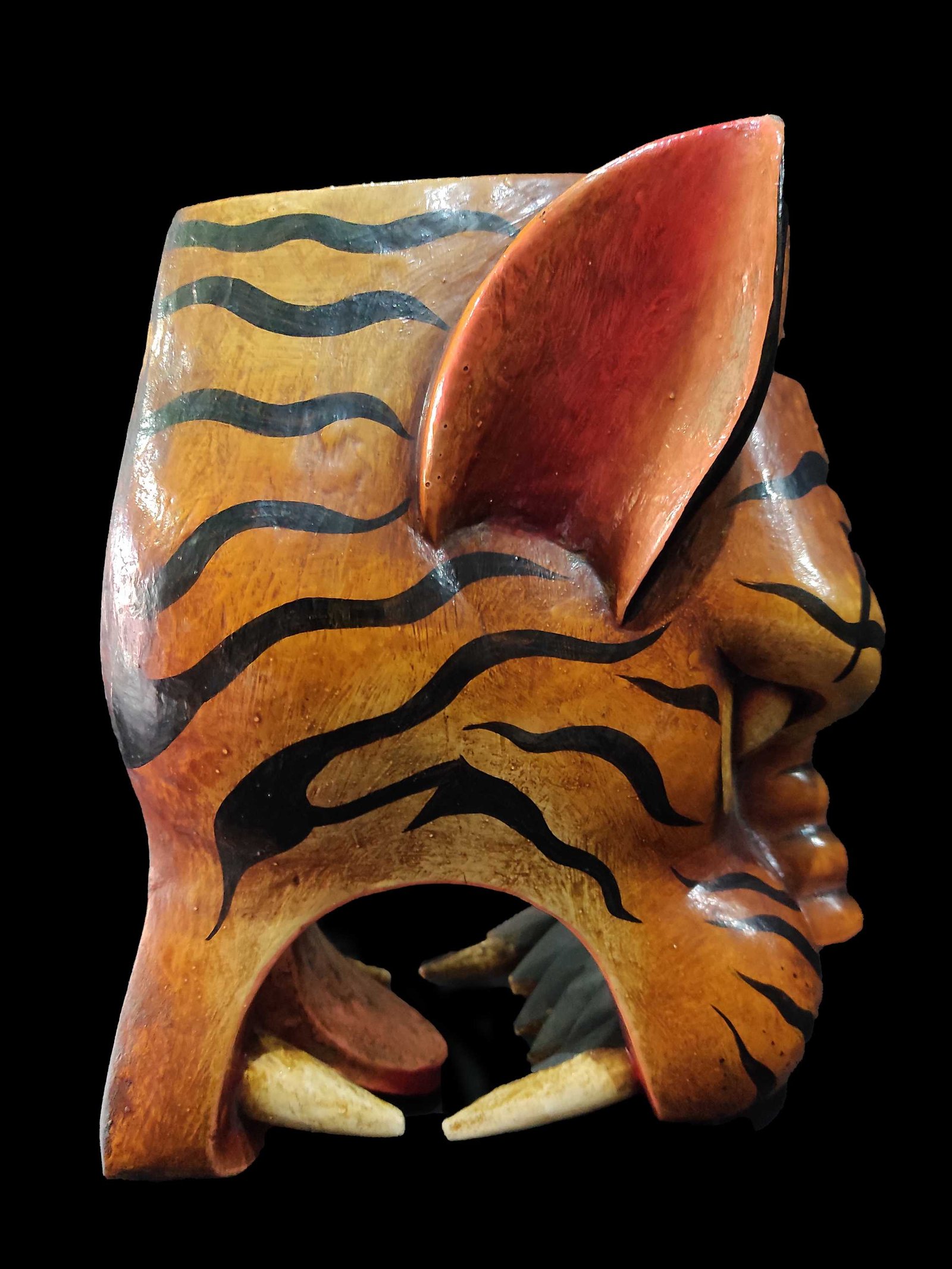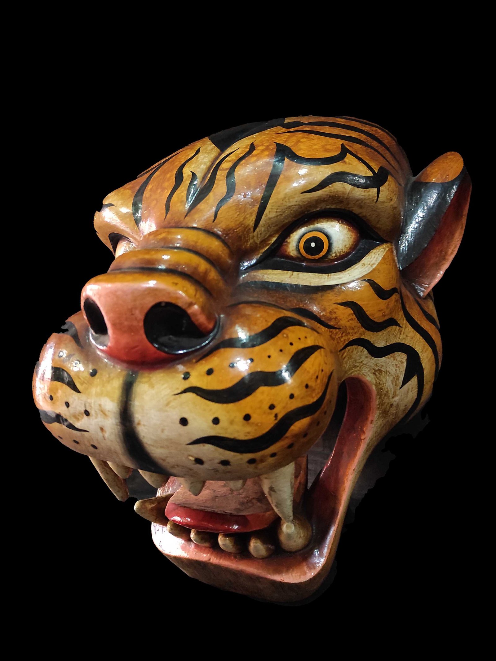 Handmade Wooden Mask of Tiger Head, Painted Yellow, Poplar Wood |