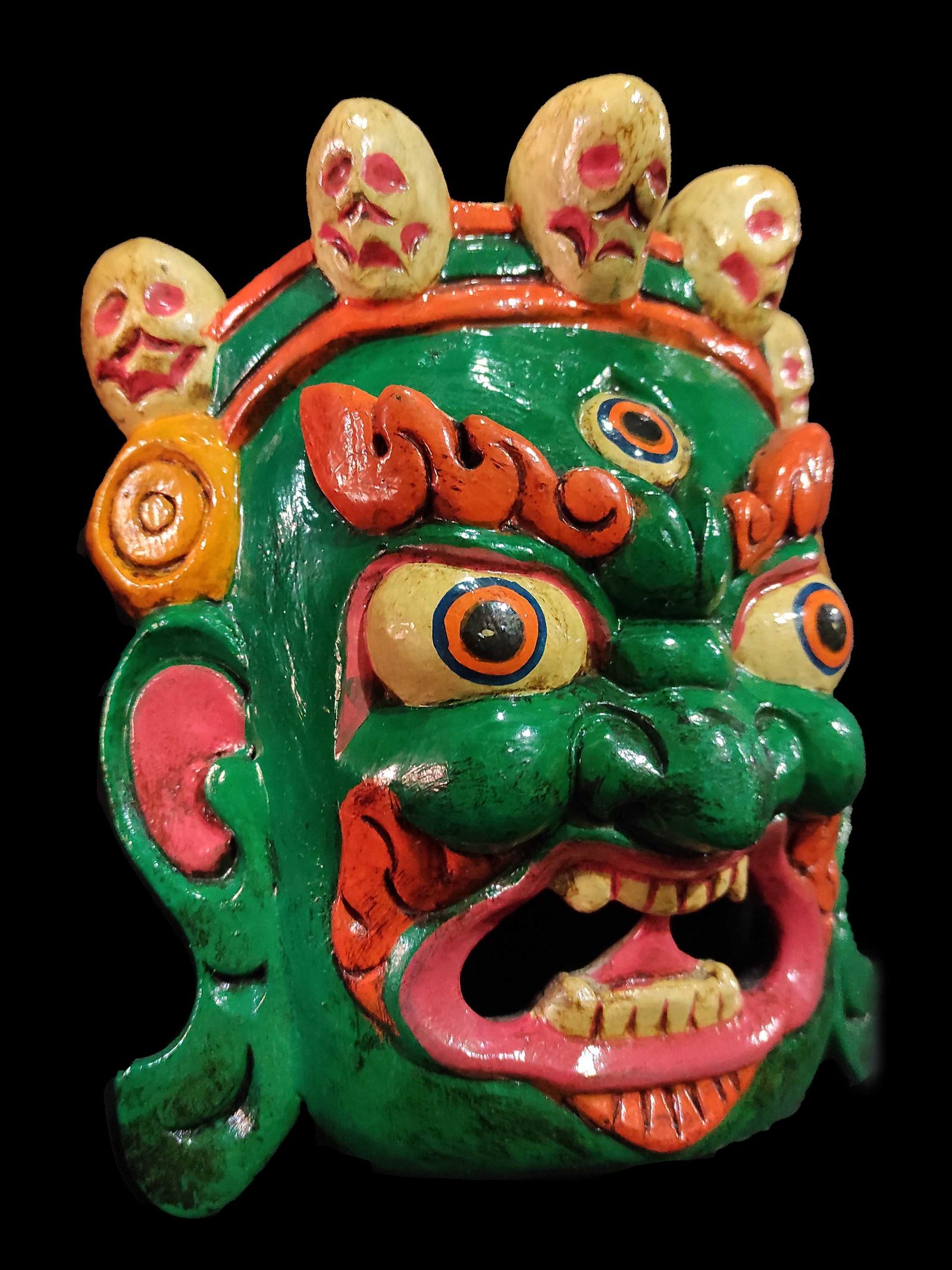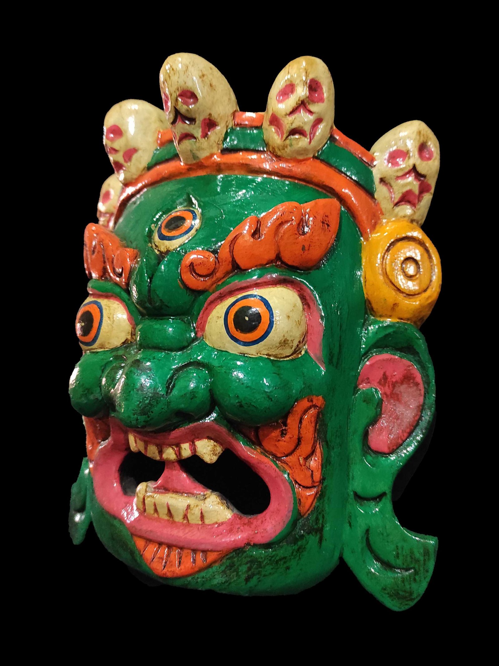 Mahakala Mask, Handmade Wooden Mask, Painted Green, Poplar Wood |