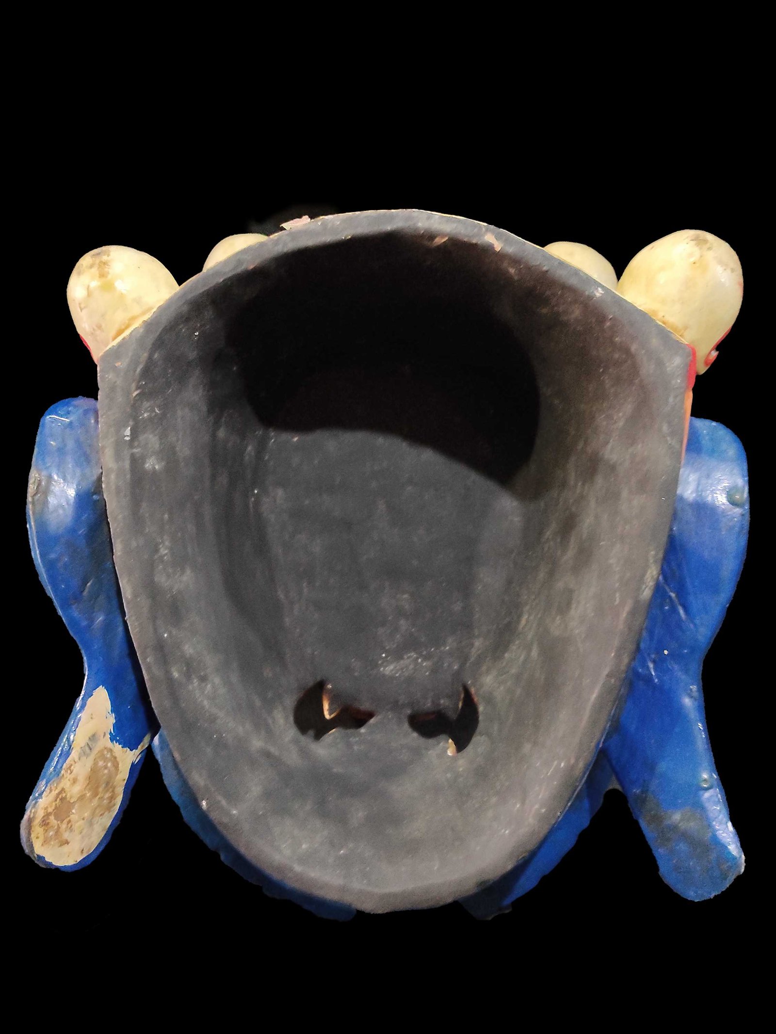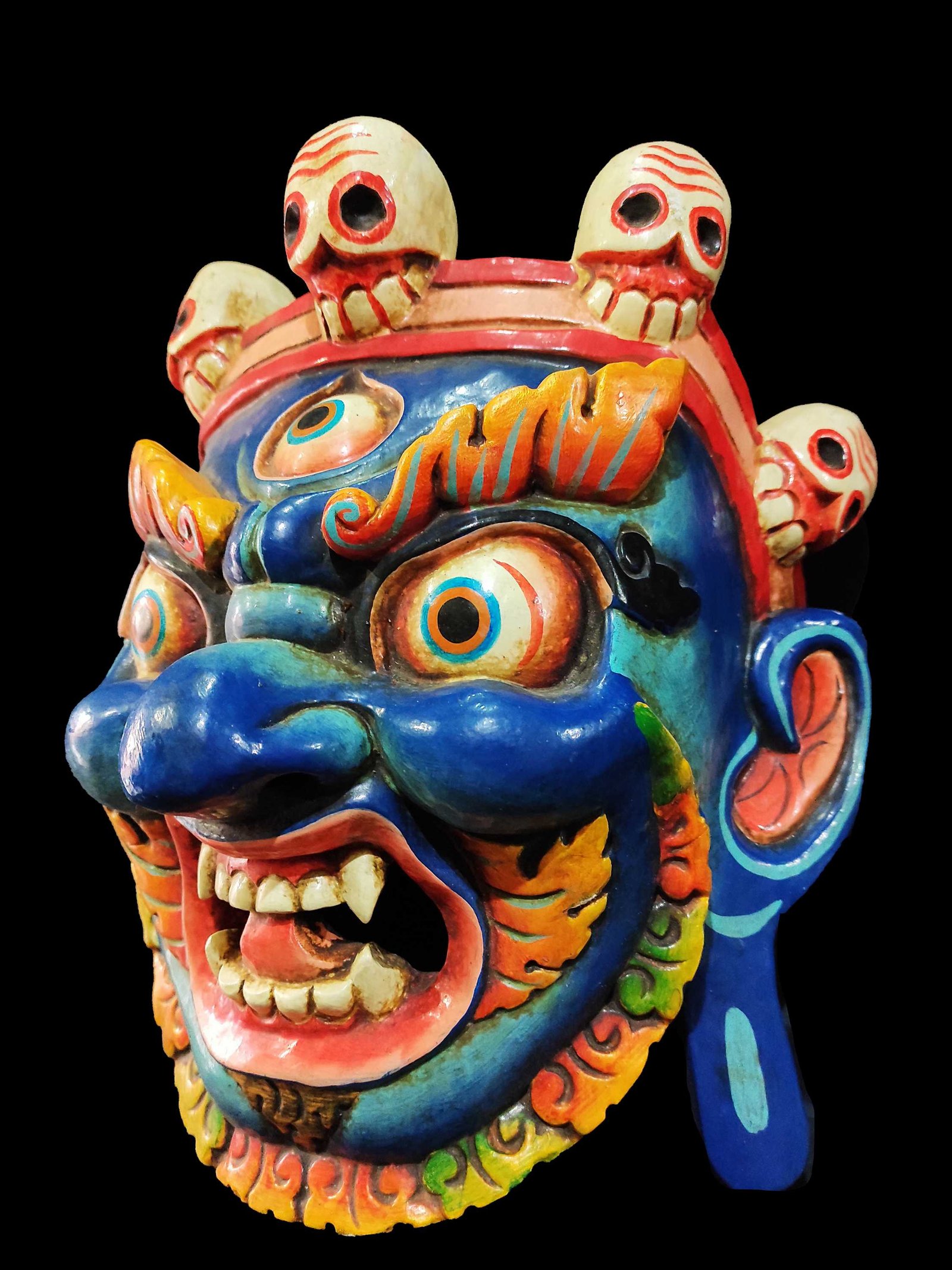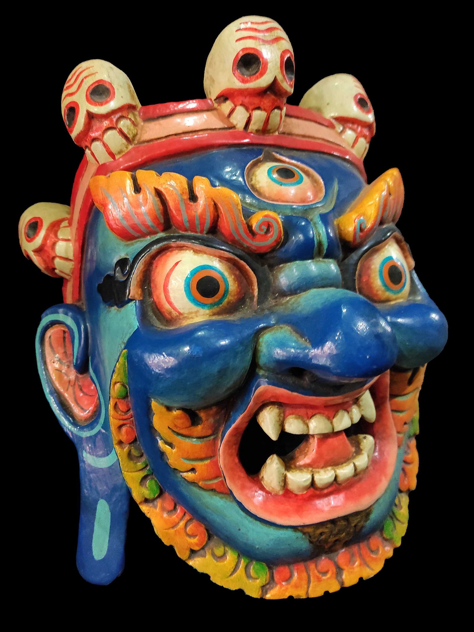 Mahakala Mask, Handmade Wooden Mask, Painted Blue, Poplar Wood , Fierce protector, destroys obstacles, guards the Dharma
