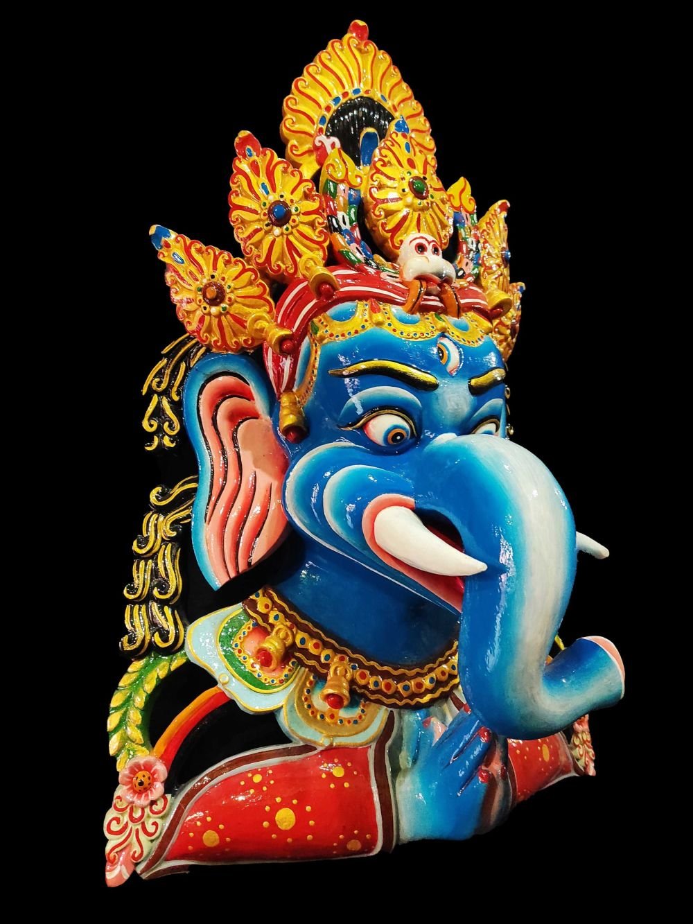 this Ganesh mask is Nepali handmade mask and we are Introducing our exquisite collection of Nepali handmade hand-carved wooden Buddhist masks and wall hangings, meticulously crafted by skilled artisans. Each piece in this collection reflects the rich cultural heritage and spiritual significance of Nepal. These masks and wall hangings are not just decorative pieces but hold deep symbolic meaning, making them perfect for adding an authentic touch to your living spaces or meditation rooms. Read More
