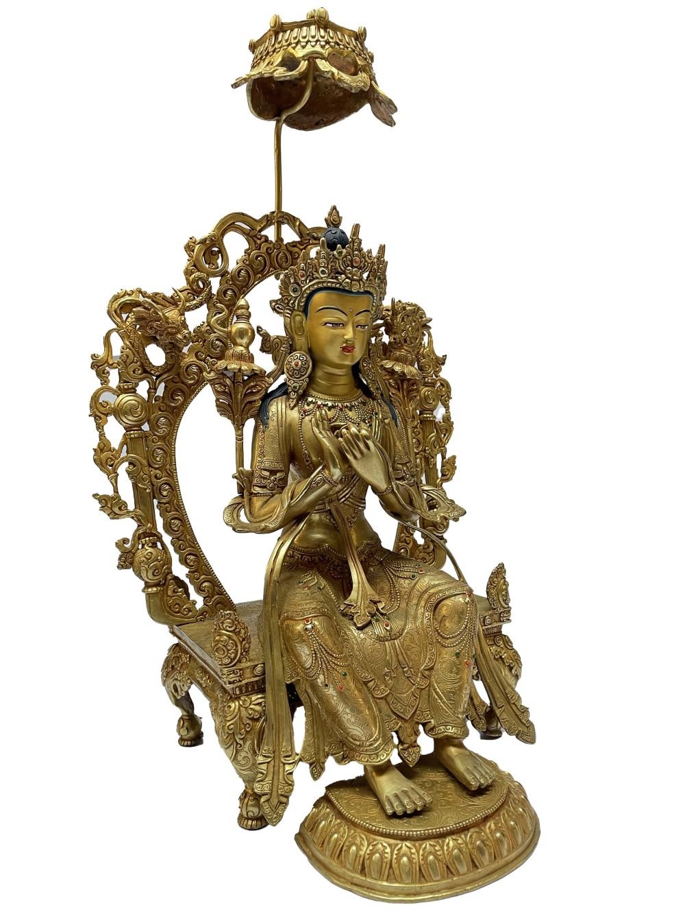 Nepali Statue of Maitreya, Full Gold Plated, Painted Face , The future Buddha, bringing love and compassion to the world