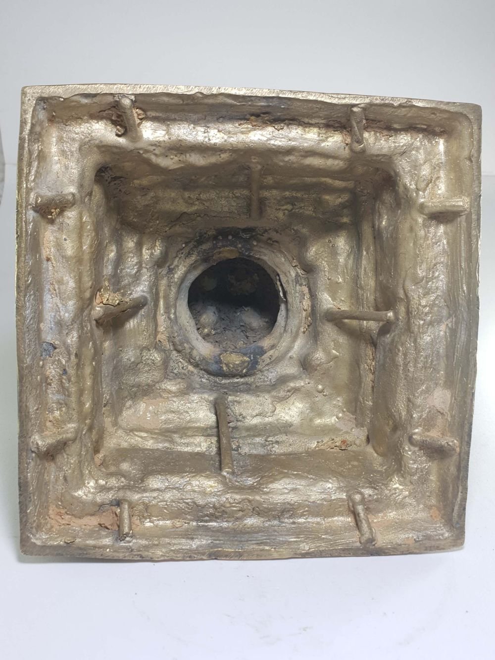 This Stupa has been created using the sand casting system, also known as sand molding casting. This widely employed manufacturing process utilizes a sand mold to produce metal products and components in various sizes and shapes. Sand casting holds significant popularity in the industry, accounting for approximately 60% of all metal castings. The sand casting process involves six primary steps. First, a pattern or replica of the desired sculpture, in this case, Stupa, is created using a material like wood or metal. The pattern is then placed in a flask, which is a box-like structure divided into two halves. The next step involves packing the flask tightly with specially formulated molding sand, creating a mold cavity that matches the shape of the pattern. The pattern is subsequently removed, leaving behind a negative impression of the sculpture within the sand mold. Read More