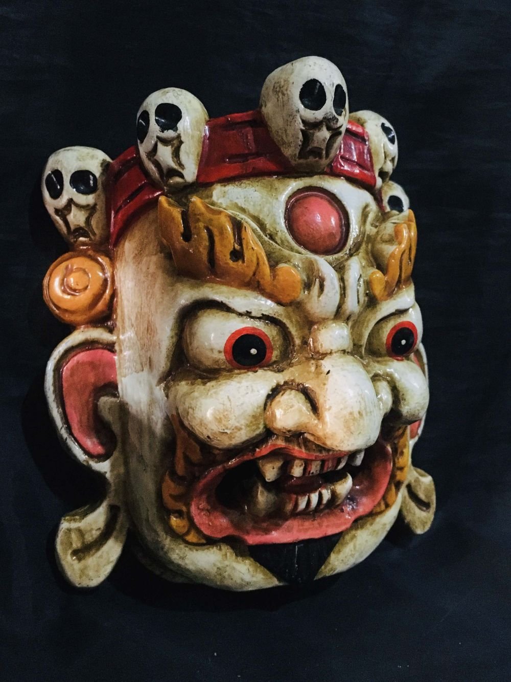 Mahakala Mask, Handmade Wooden Mini Mask of Mahakala, Painted White, Poplar Wood , Fierce protector, destroys obstacles, guards the Dharma