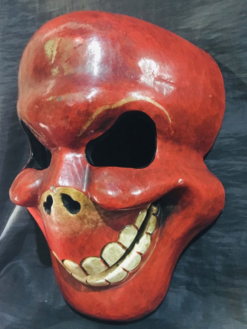Citipati Mask, Handmade Wooden Mask of Skull, Painted Red, Poplar Wood , Lords of the Cemetery, Guardians of Transcendence and Impermanence