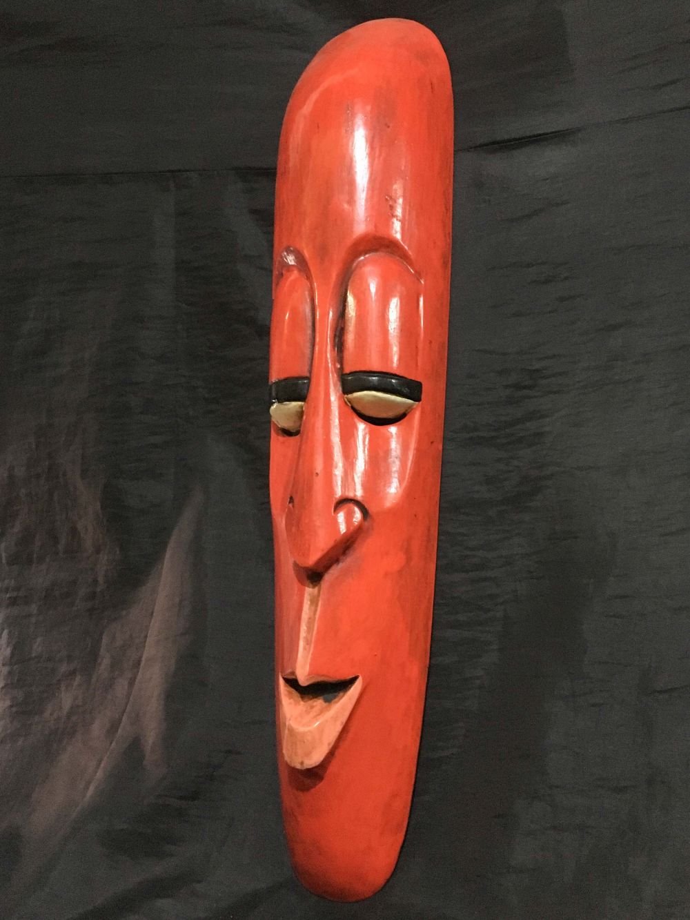 Handmade Wooden Mask of Long Face Somalian, Painted Orange, Poplar Wood |