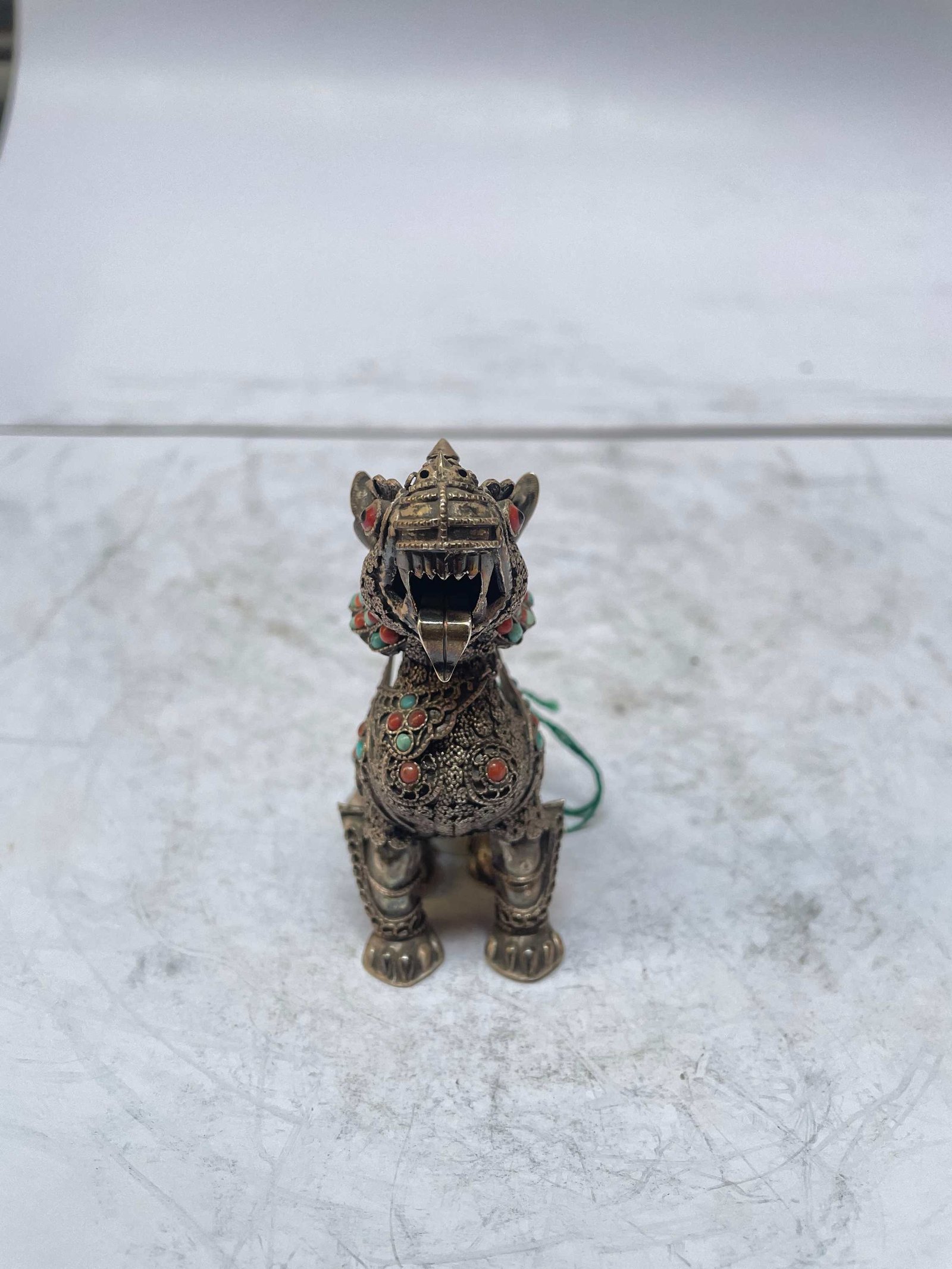 Master Quality, Sterling Silver, 62 Gram Statue of Snow Lion, Old Stock , A guardian statue often placed at temple entrances, symbolizing protection and strength
