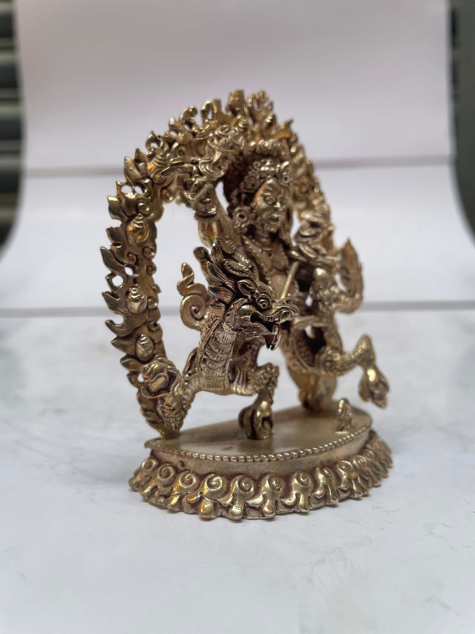 : About Silver Statue:The Silver Statues are rarely made these days, This White Jambhala statue date back to the late 1990 A.D. Most of the statues in our collection are highly collectibles because the silver statues were rarely found even though the prices were cheap during the late 1990 and early 2000. In this present era, the price of silver has hicked so much that making a silver statue for a commercial purpose is not viable anymore. The price we have offered for the statues are comparatively than of making a new one.