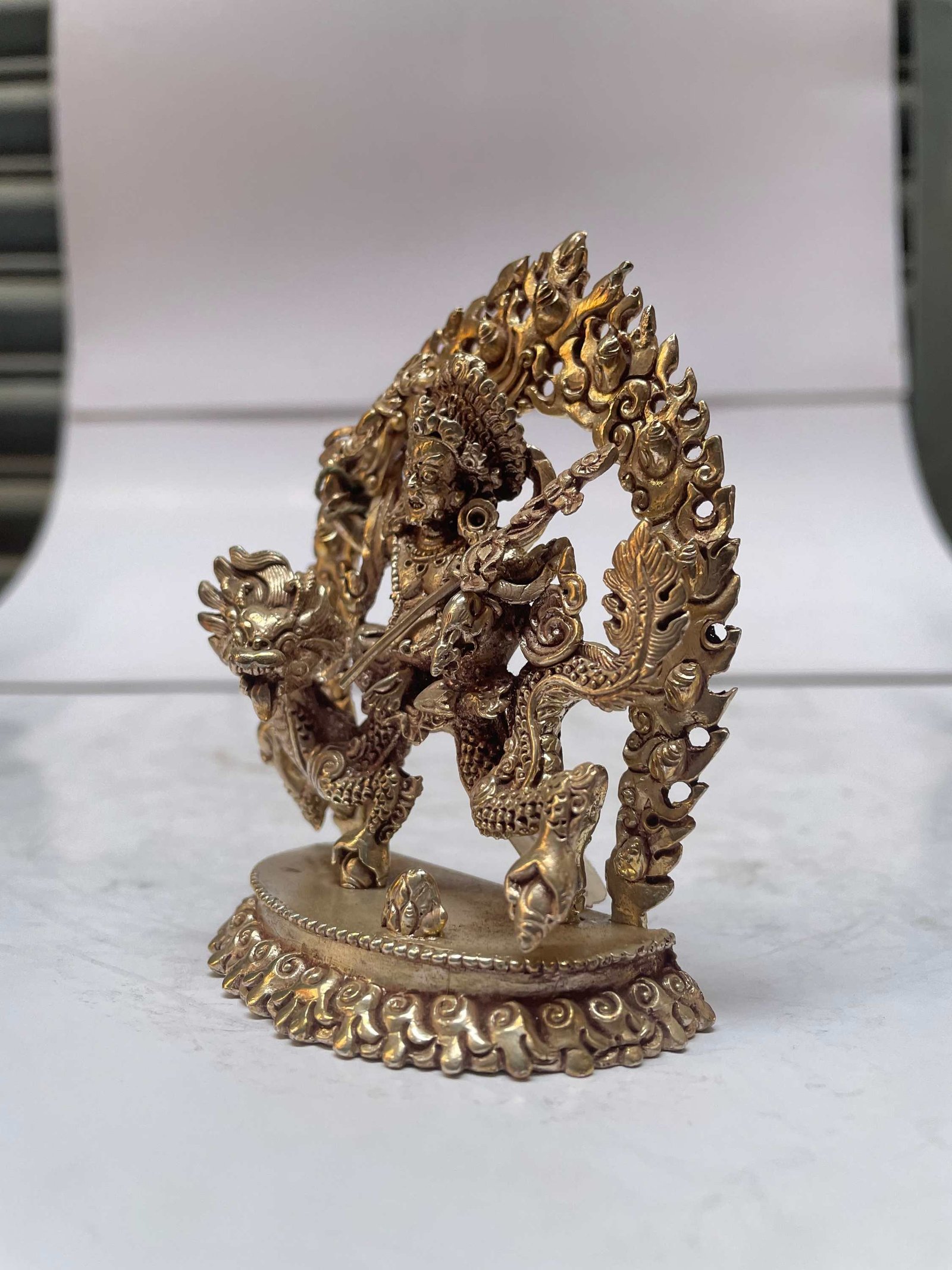 This White Jambhala is made by the process of the Lost-Wax system. The lost-wax process, also known as investment casting, is a time-honored technique used to create metal sculptures. It involves several steps that have been practiced for thousands of years. Skilled artisans begin by sculpting a detailed wax model, capturing every intricate detail of the desired sculpture. The wax model is then coated with a ceramic shell, formed by multiple layers of ceramic material. Once the shell has cured, the wax is melted and drained out, leaving behind a cavity. Molten metal is poured into the cavity, creating a precise replica of the original wax model. After the metal has cooled and solidified, the ceramic shell is carefully removed, revealing the final metal sculpture. Read More