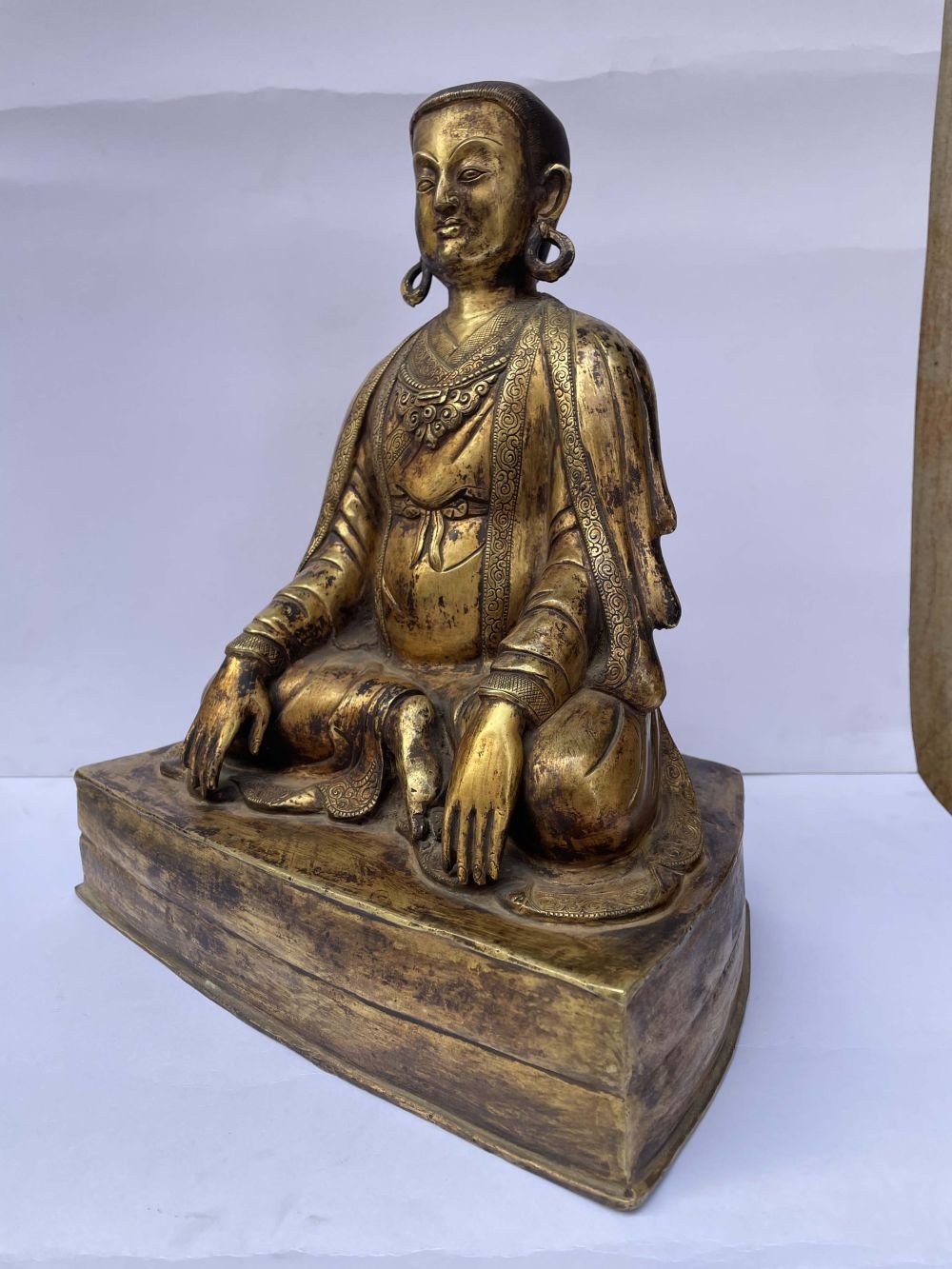 Buddhist Statue of Marpa Lotsawa, Full Fire Gold Plated, Antique Finishing , The great translator, bridge of wisdom between India and Tibet