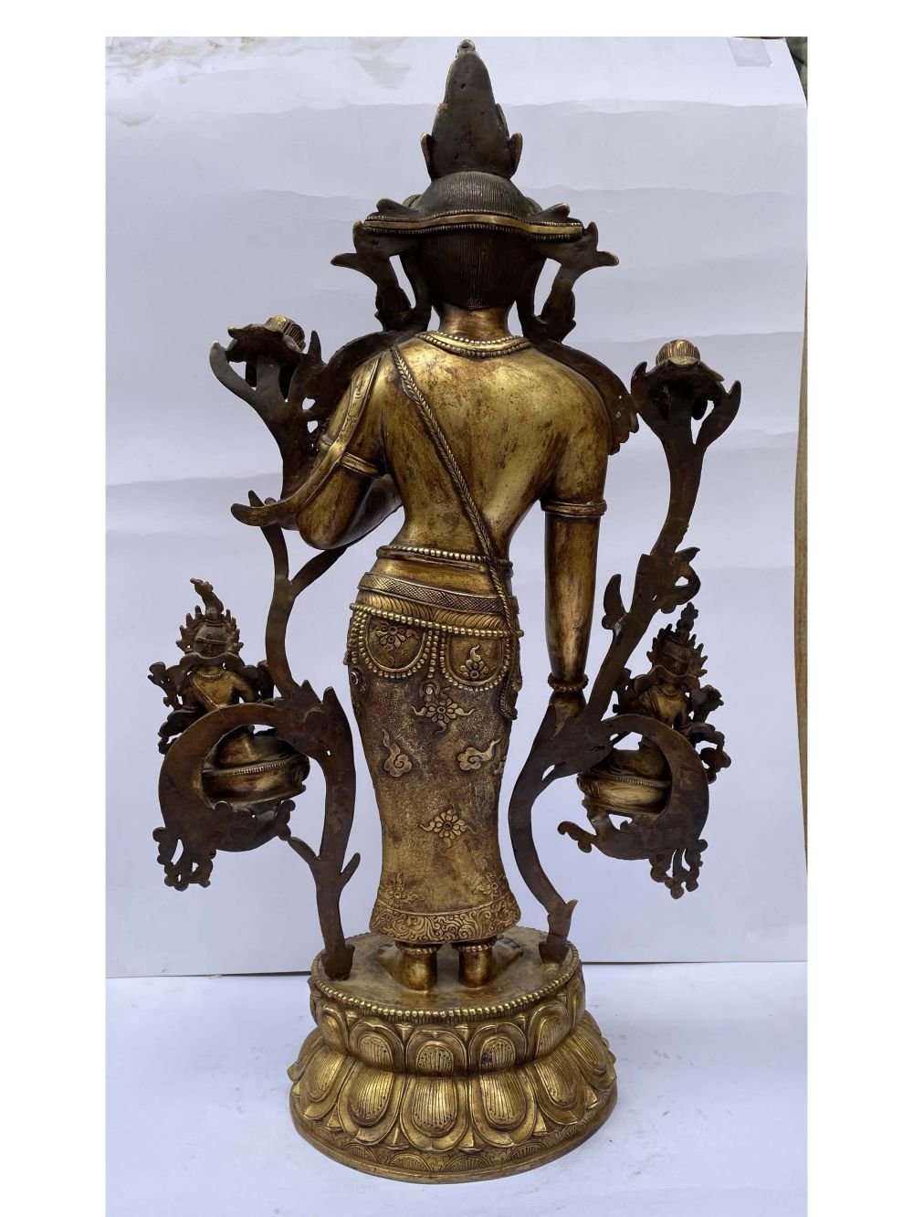 This Padmapani Lokeshvara is finished with full gold plating. also known as mercury gold plating or fire gold plating. This traditional technique involves the application of a genuine layer of gold onto the Padmapani Lokeshvara. Referred to as mercury gold plating, it is considered the correct and authentic form of gold plating in Nepal. Despite being more expensive than electroplating, this traditional mercury gold plating is gaining popularity again in Nepal. People are drawn to its authenticity, longevity, and the unmatched beauty it brings to the Padmapani Lokeshvara. The resurgence of interest in this traditional form of gold plating reflects a growing appreciation for the craftsmanship and cultural heritage of Nepal Read More