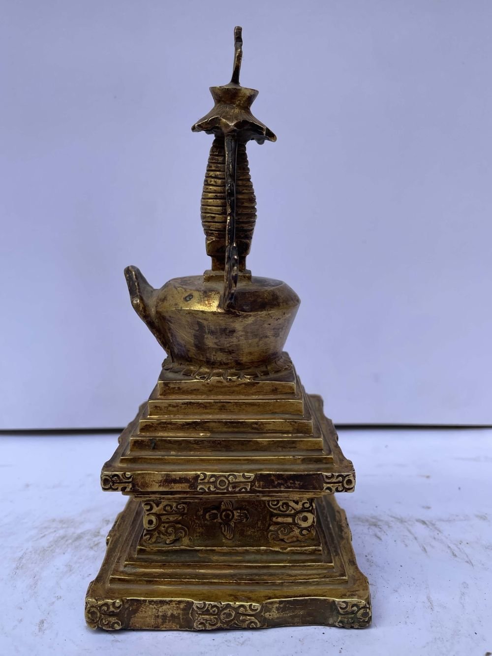 Buddhist Stupa of Complete Victory -Namgyal Chorten, Full Fire Gold Plated, Antique Finishing , Symbol of Enlightenment and Protection