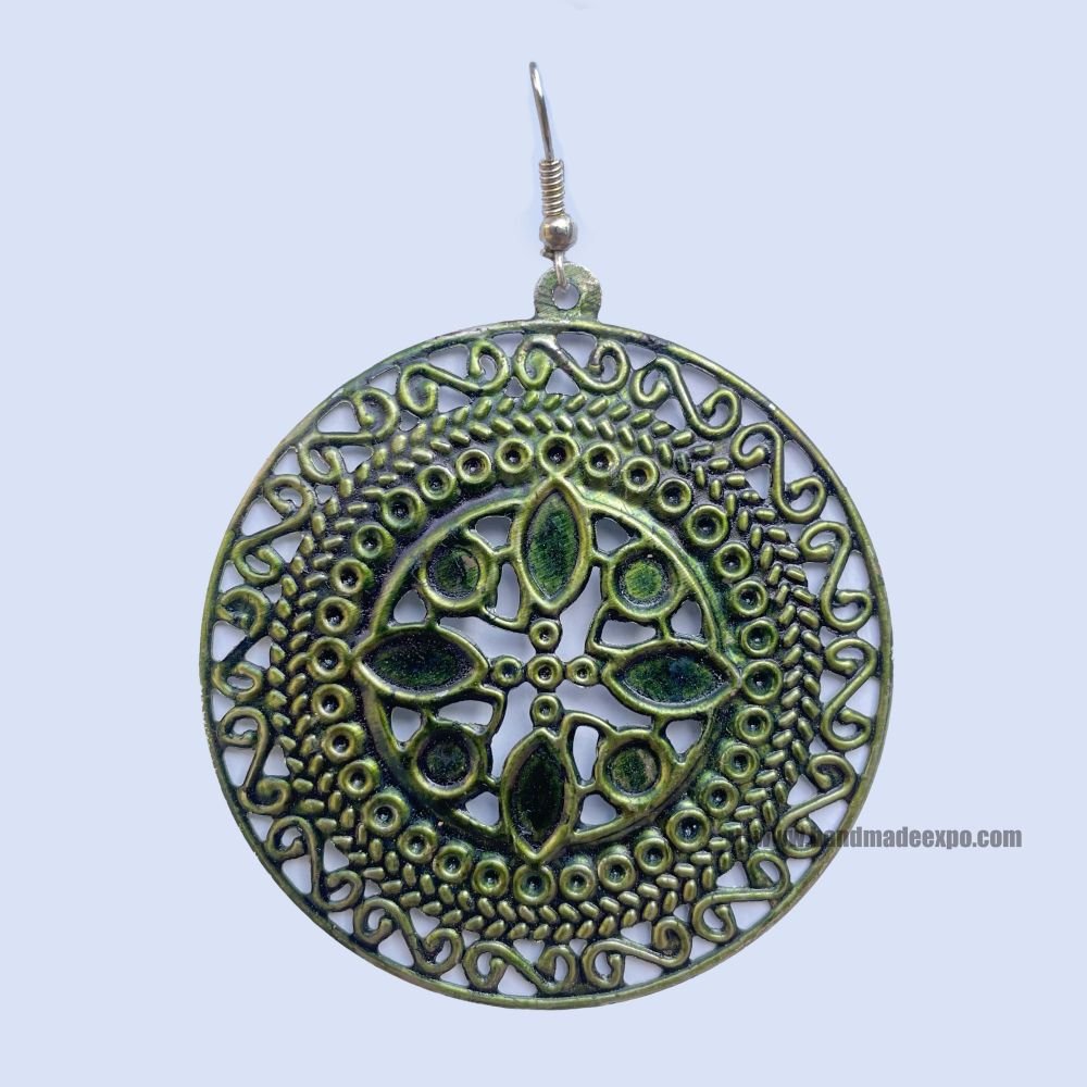 Metal Earring Flower Design, Green |