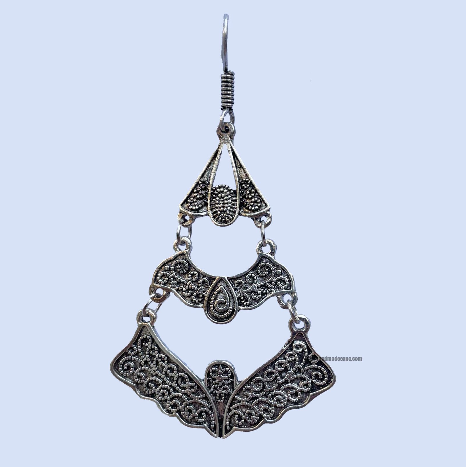 Metal earrings are a type of jewelry worn on the earlobes or other parts of the ear. They can be made from a variety of metals, such as gold, silver, stainless steel, brass, copper, or titanium. Metal earrings come in many different styles, shapes, and sizes, and can be simple or elaborate, depending on the design.