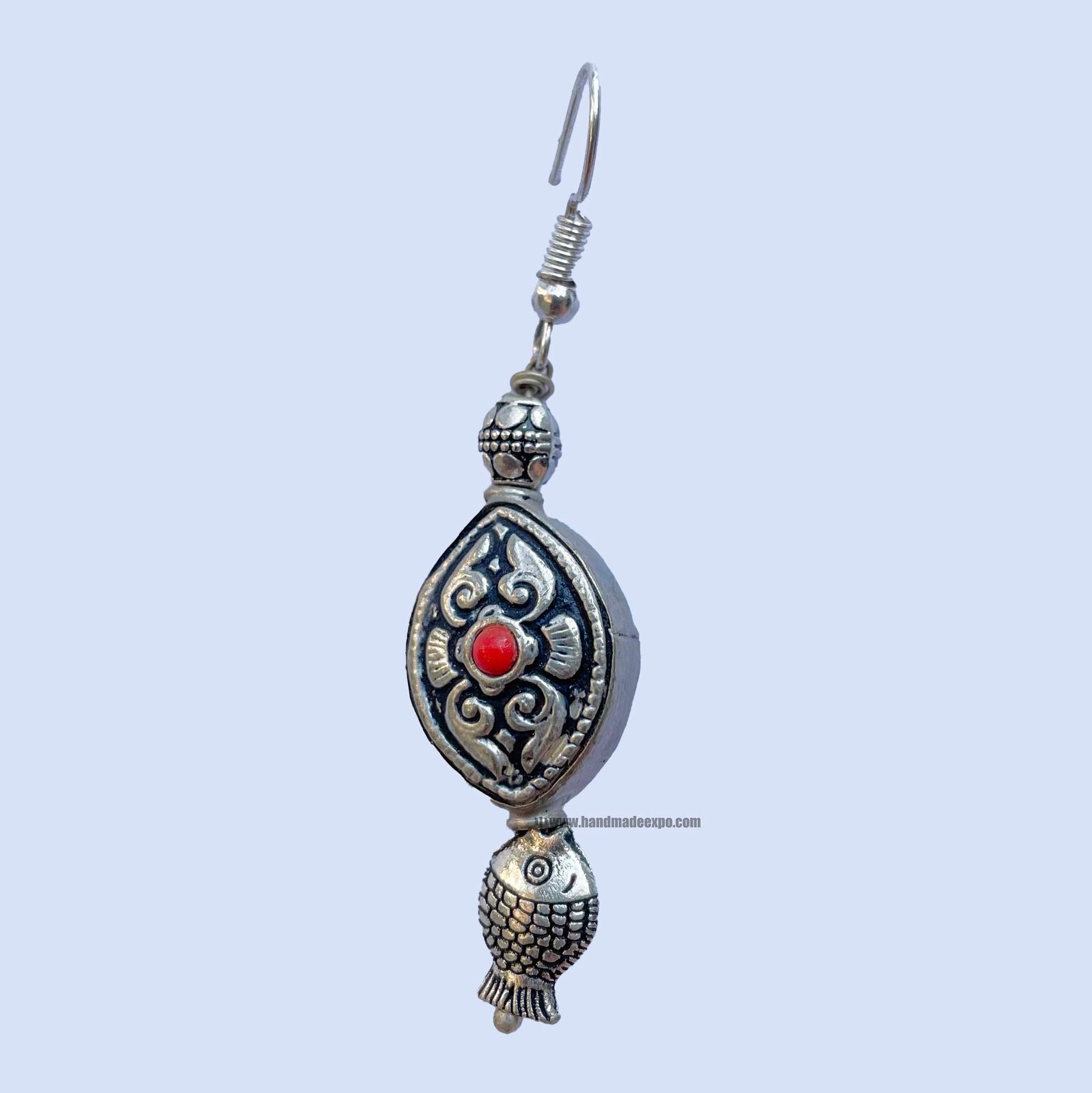 Metal earrings are a type of jewelry worn on the earlobes or other parts of the ear. They can be made from a variety of metals, such as gold, silver, stainless steel, brass, copper, or titanium. Metal earrings come in many different styles, shapes, and sizes, and can be simple or elaborate, depending on the design.
