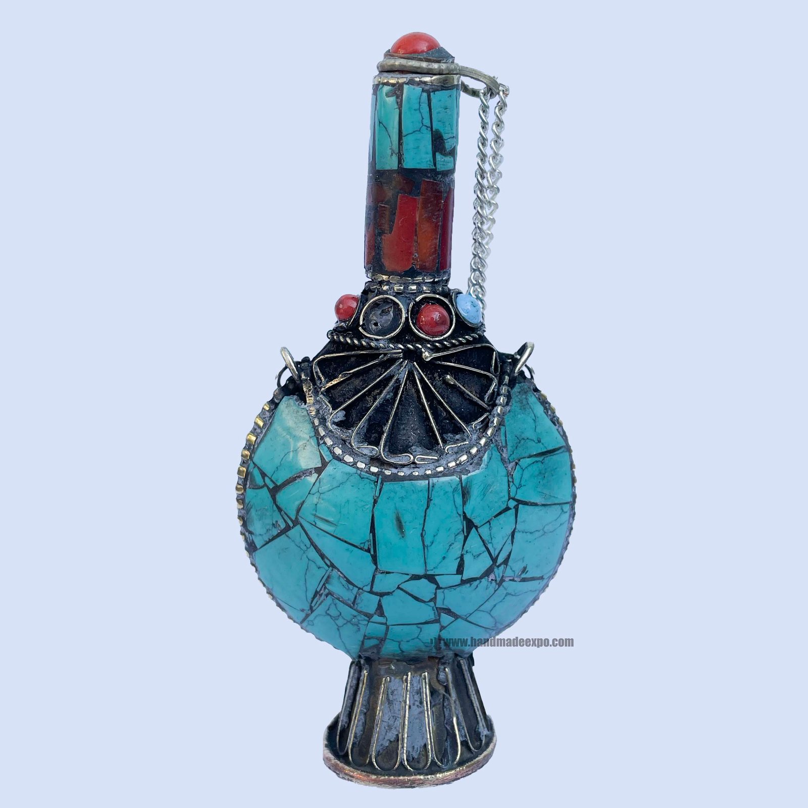 Unique Collectible Snuff Bottle, Nars Dani, with Metal Setting |