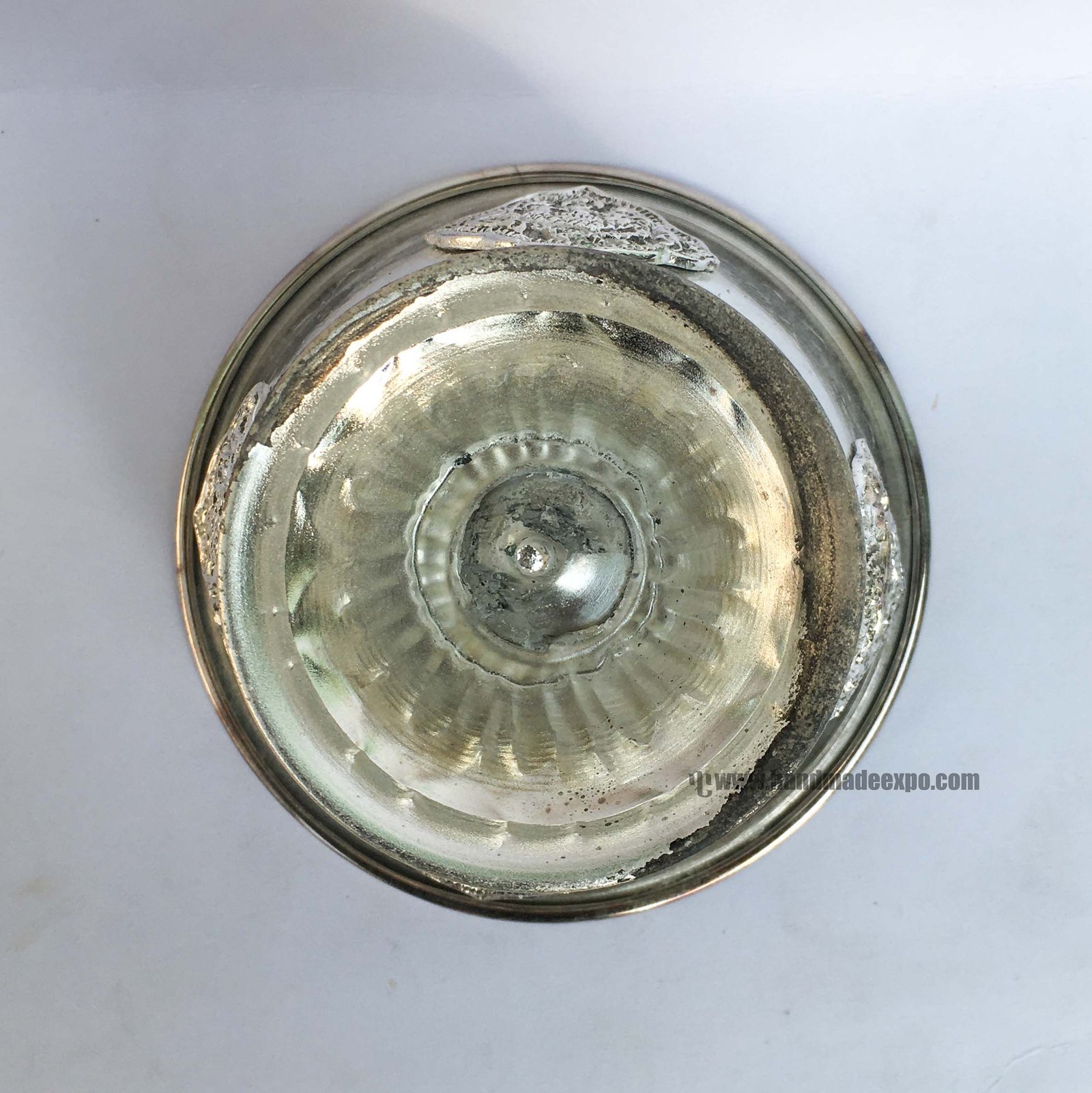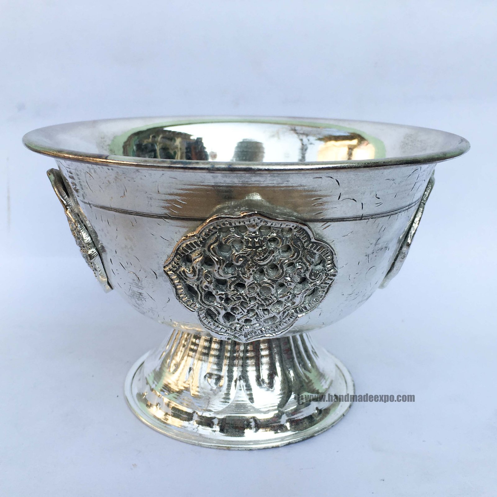 Metal offering Bowls, Silver Wash with Stand, Glossy |