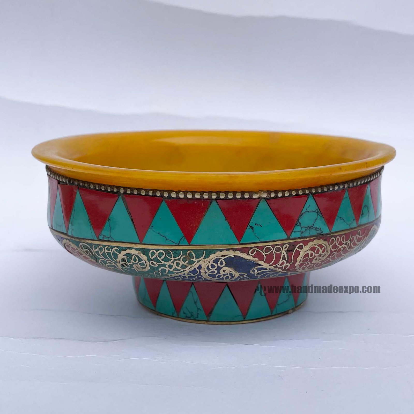 The Offering Bowls is adorned with an exquisite array of semi-precious stones, including turquoise, coral, and lapis lazuli. These stones are carefully selected and meticulously placed on the Offering Bowls's surface, adding a touch of opulence and enhancing its overall beauty. Each stone is thoughtfully positioned using a high-quality adhesive, ensuring secure and long-lasting attachment. The vibrant colors and unique patterns of the stones create a captivating contrast against the backdrop of the Offering Bowls, elevating its visual appeal and making it truly eye-catching. Read More