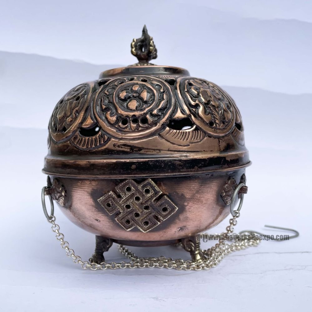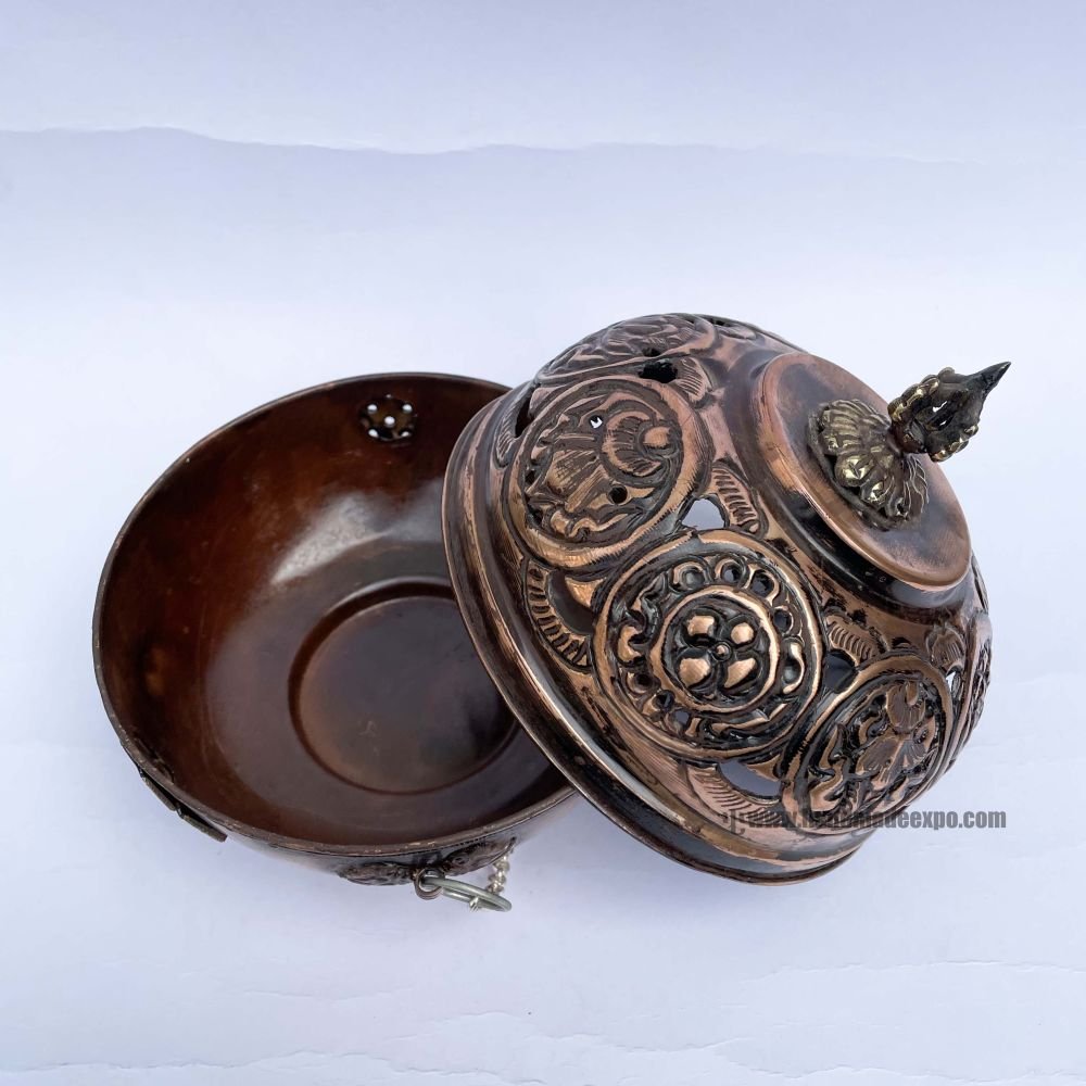 Many are made in Nepal (especially in the Kathmandu Valley) by skilled artisans and sold as ritual tools for Tibetan Buddhist practitioners. Some modern versions are electric, but traditional ones are metal and meant for charcoal or direct burning.