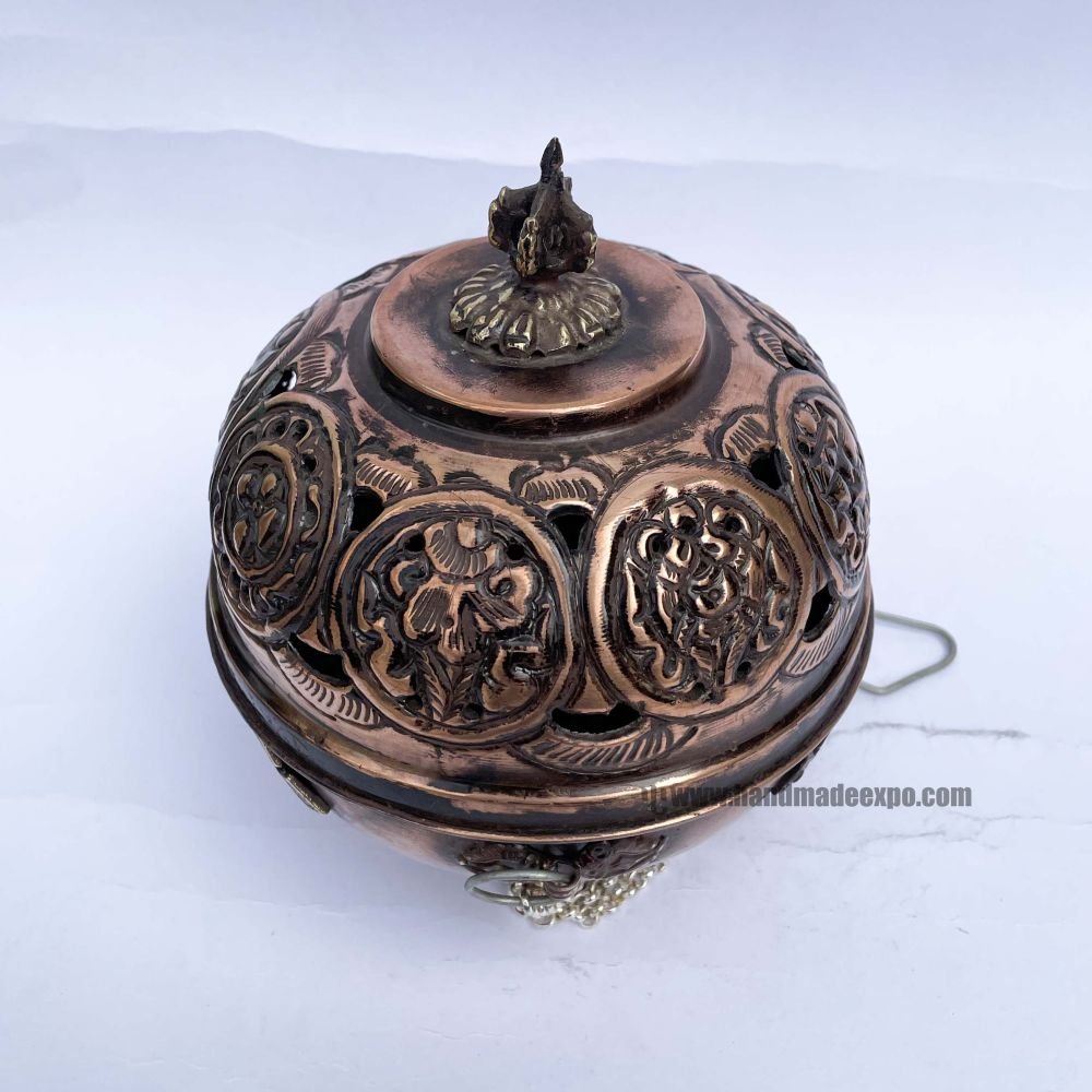 Sang Phulpa Hand Beaten Metal Incense Burner, Brass and Copper, Hanging & Swinging, Sangbur |