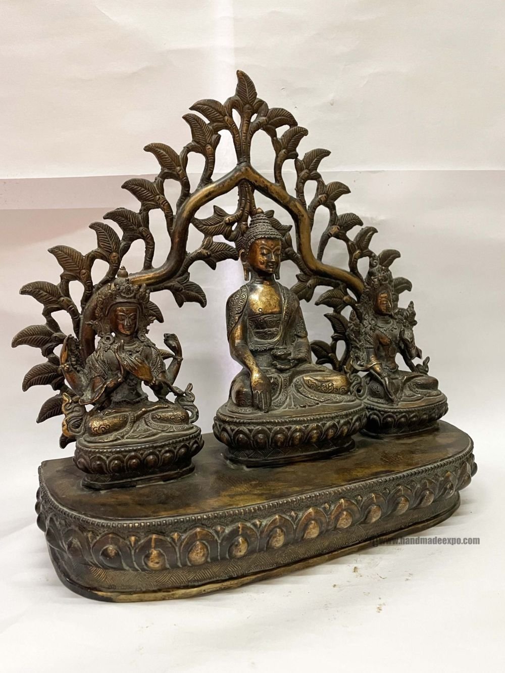 Set of Buddhist Statue of Shakyamuni Buddha, White Tara, and Green Tara Bronze, Antique , The Enlightened One and Teacher of Humanity