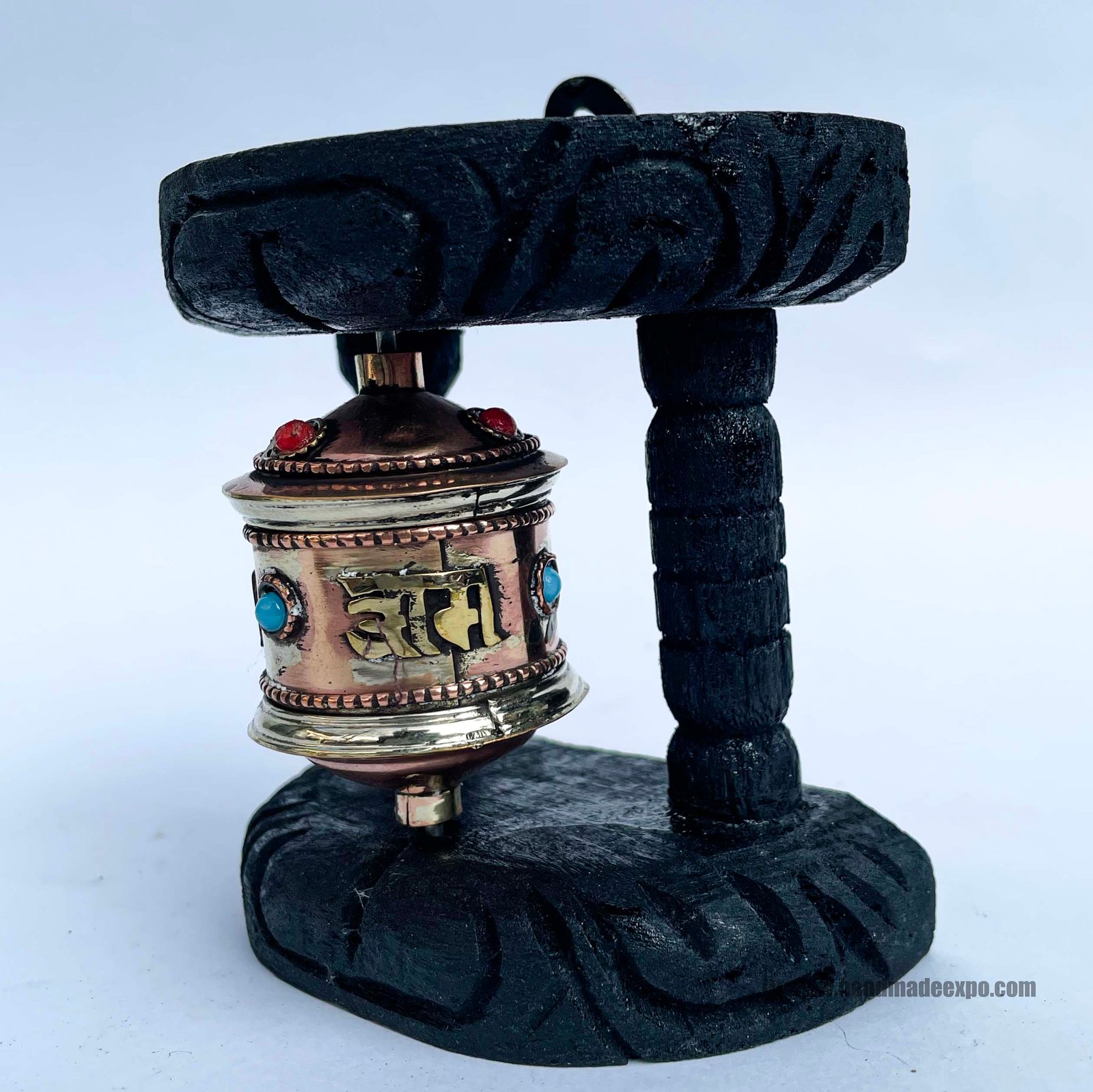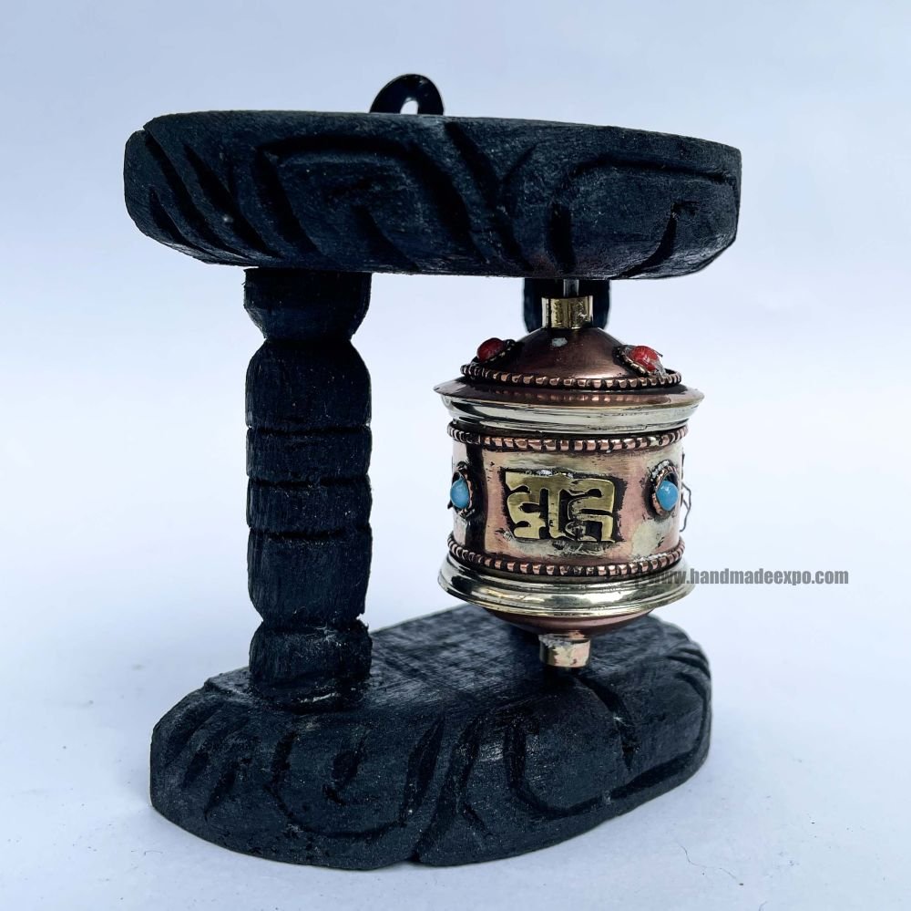 A prayer wheel is a cylindrical wheel on a spindle made from metal, wood, stone, leather, or coarse cotton. Traditionally, the mantra Om Mani Padme Hum is written in the Newari language of Nepal, on the outside of the wheel. Also sometimes depicted are Dakinis, Protectors, and very often the 8 auspicious symbols Ashtamangala. At the core of the cylinder is a "Life Tree" often made of wood or metal with certain mantras written on or wrapped around it. Many thousands (or in the case of larger prayer wheels, millions) of mantras are then wrapped around this life tree. The Mantra Om Mani Padme Hum is most commonly used, but other mantras may be used as well. According to the Tibetan Buddhist tradition based on the lineage texts regarding prayer wheels, spinning such a wheel will have much the same meritorious effect as orally reciting the prayers. Read More