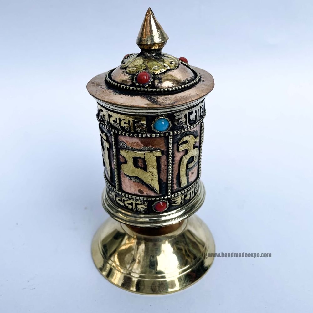 Table Prayer Wheel, with Mantra Inside , A wheel containing mantras, used to accumulate merit and spread blessings