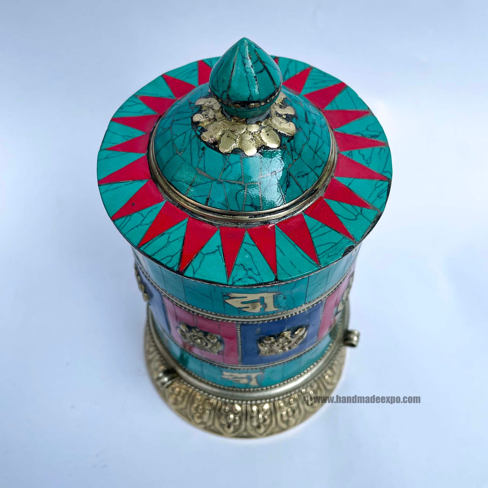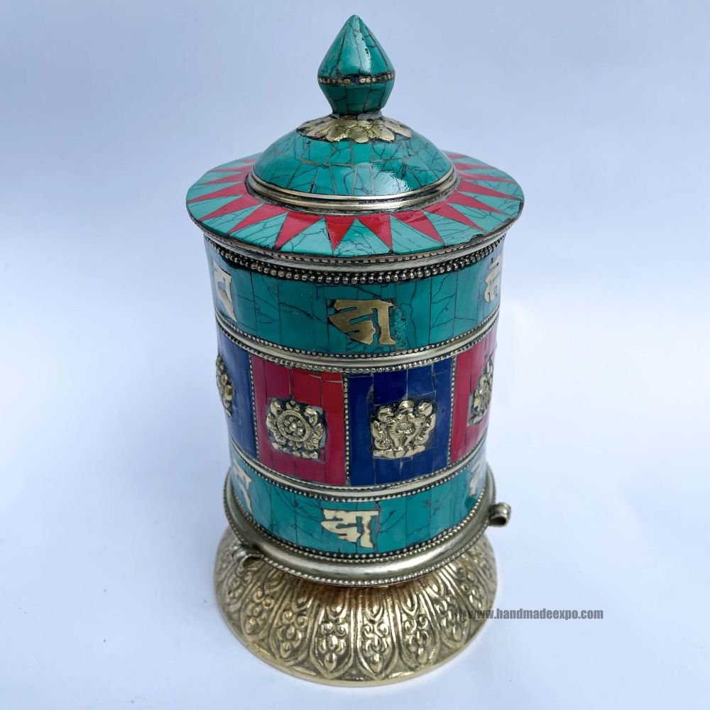 Table Prayer Wheel, with Mantra Inside, , A wheel containing mantras, used to accumulate merit and spread blessings