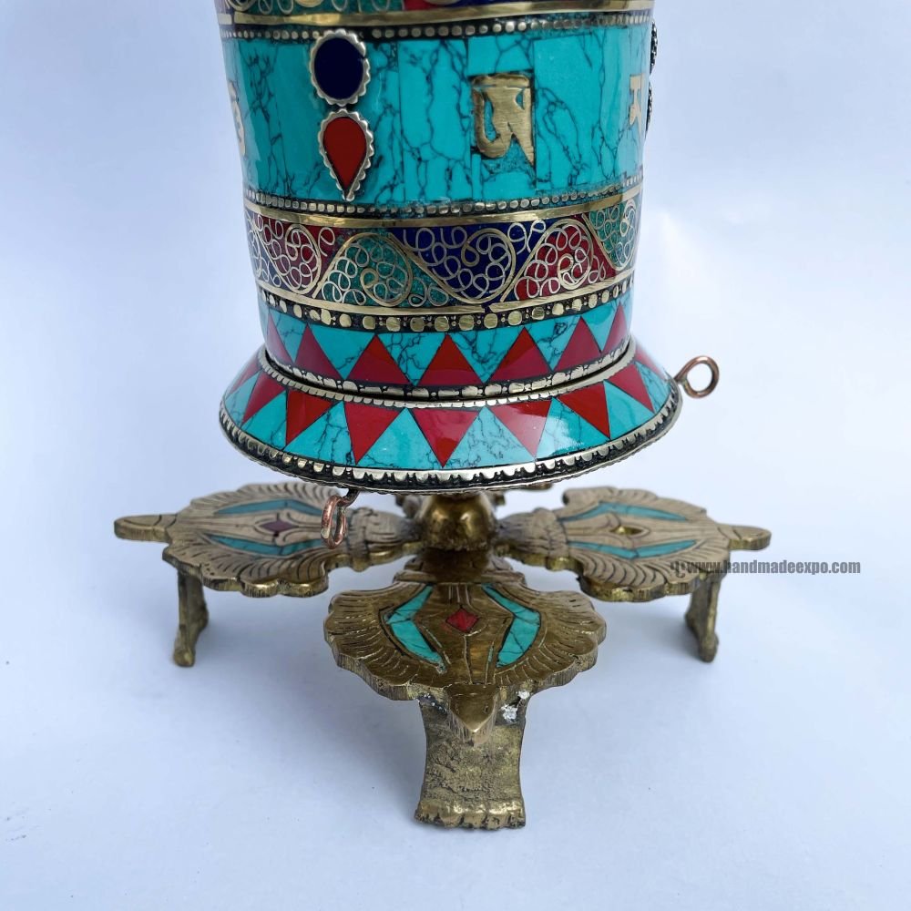 Table Prayer Wheel, with Mantra Inside, Stone Setting , A wheel containing mantras, used to accumulate merit and spread blessings