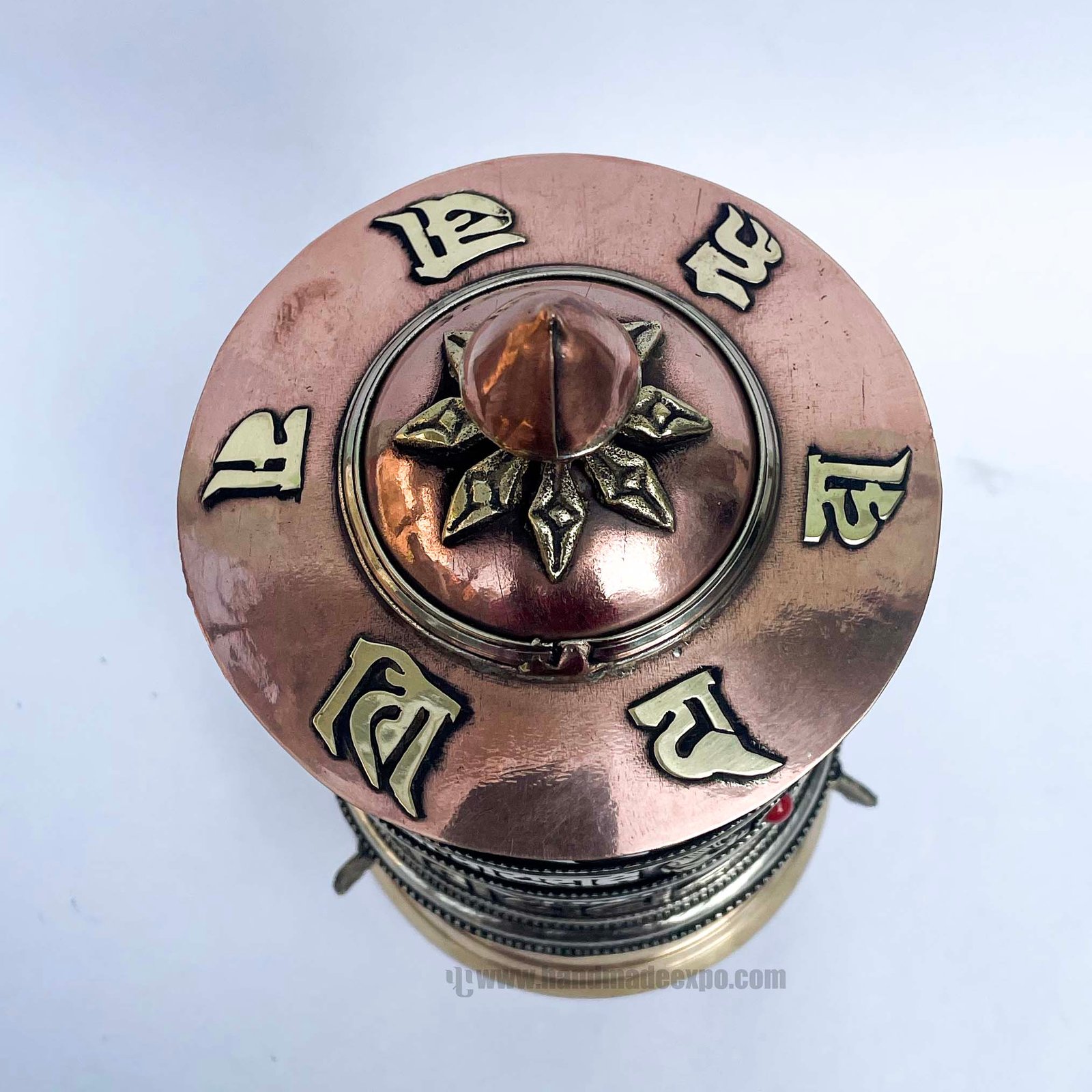 Table Prayer Wheel, with Mantra Inside , A wheel containing mantras, used to accumulate merit and spread blessings