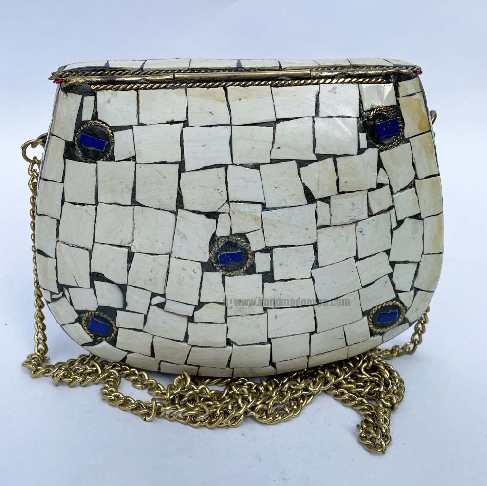 Metal lady's bags with stone settings are a traditional form of Nepali handicrafts that has been around for centuries. These bags are typically made of high-quality metals such as brass, copper, or silver, and are often adorned with colorful stones or gems.
