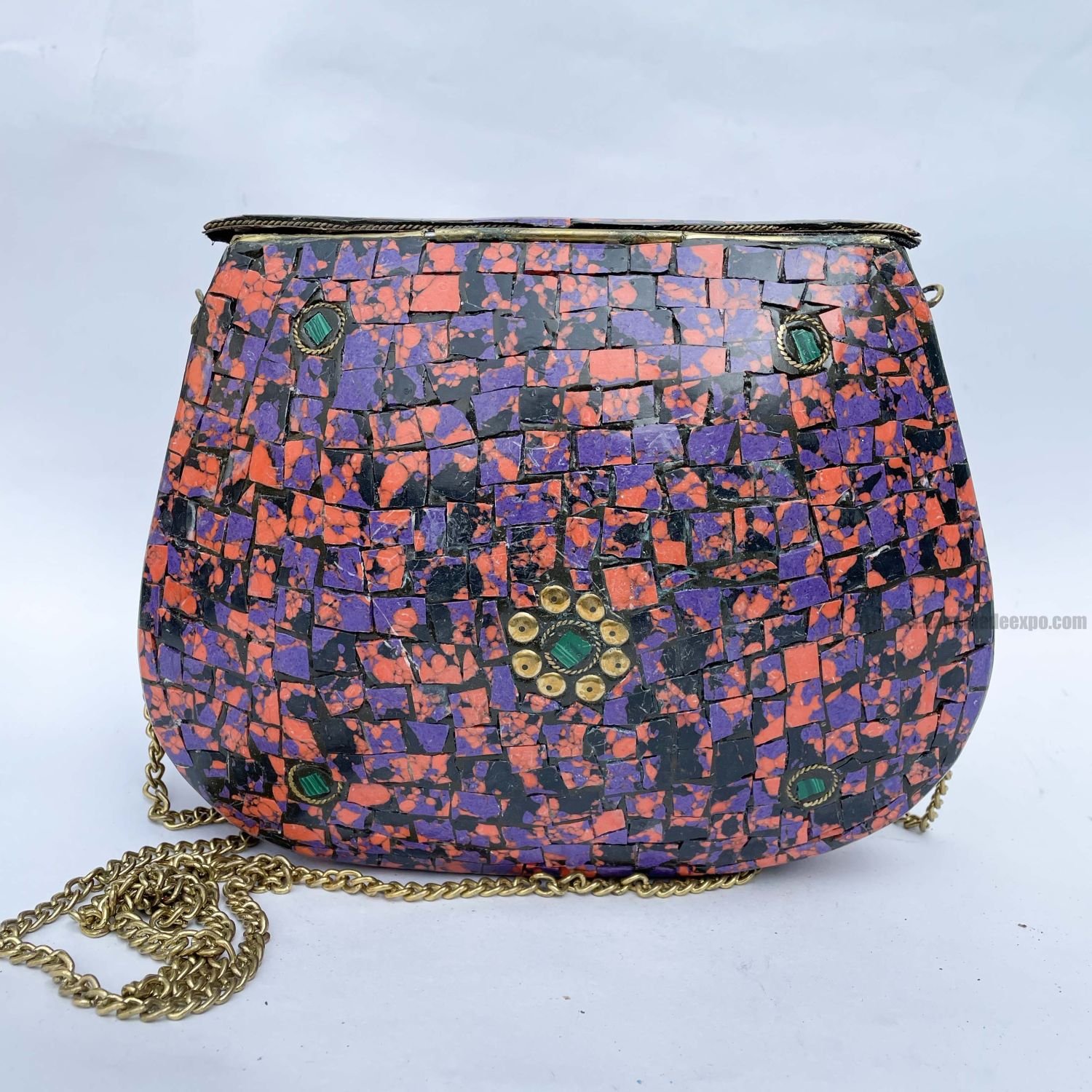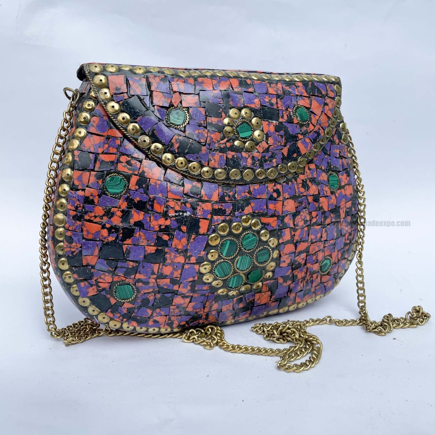 Metal lady's bags with stone settings are a traditional form of Nepali handicrafts that has been around for centuries. These bags are typically made of high-quality metals such as brass, copper, or silver, and are often adorned with colorful stones or gems.