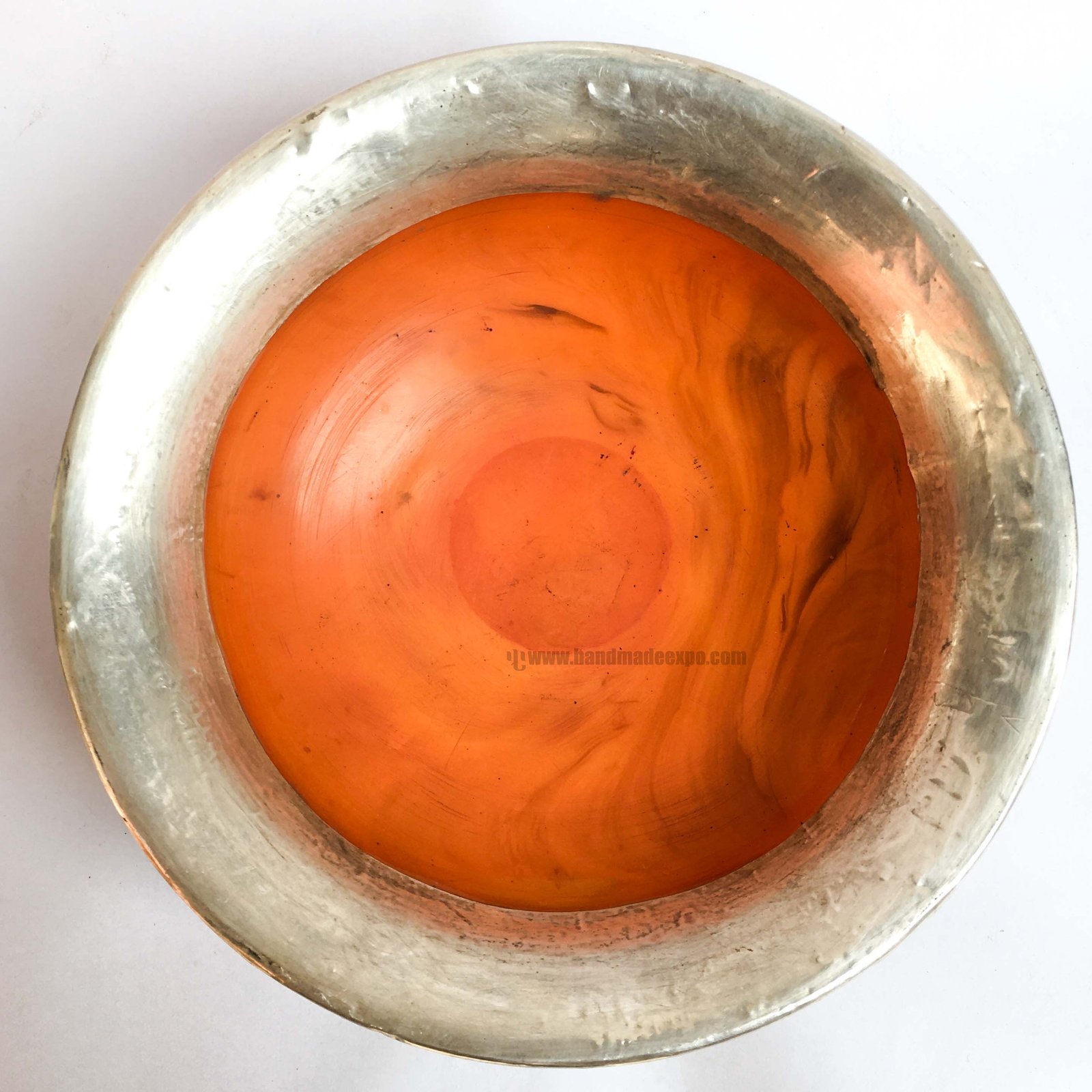 Large Imitation Amber offering Bowl with Silver and metal Setting |