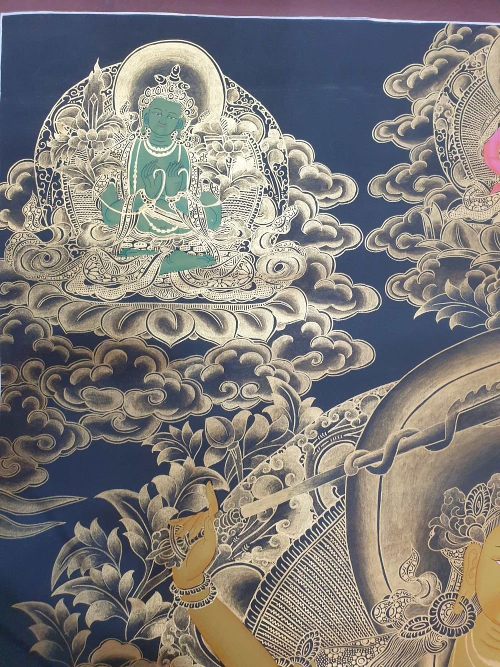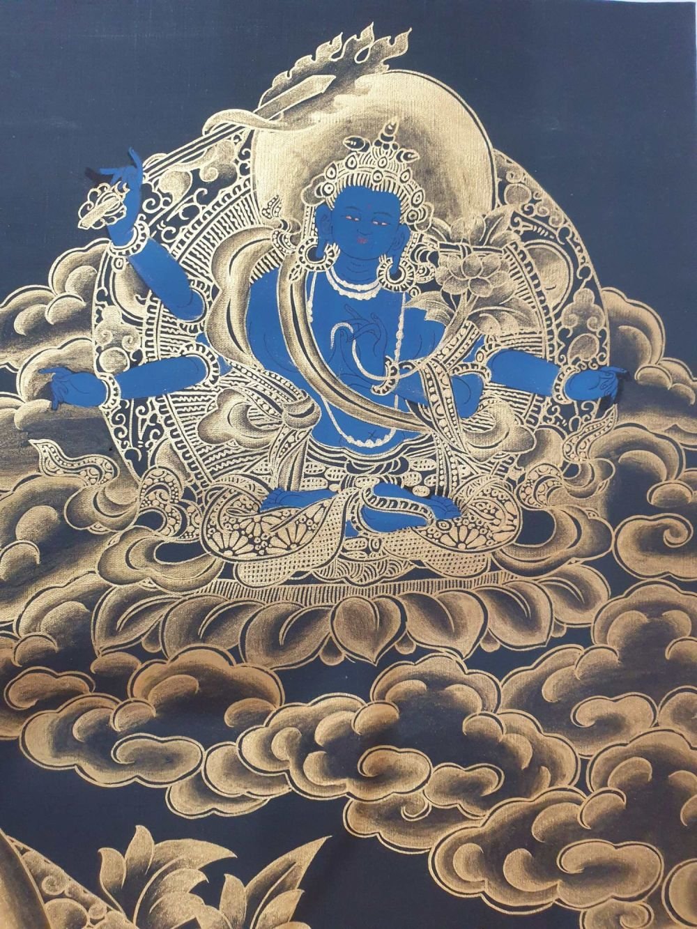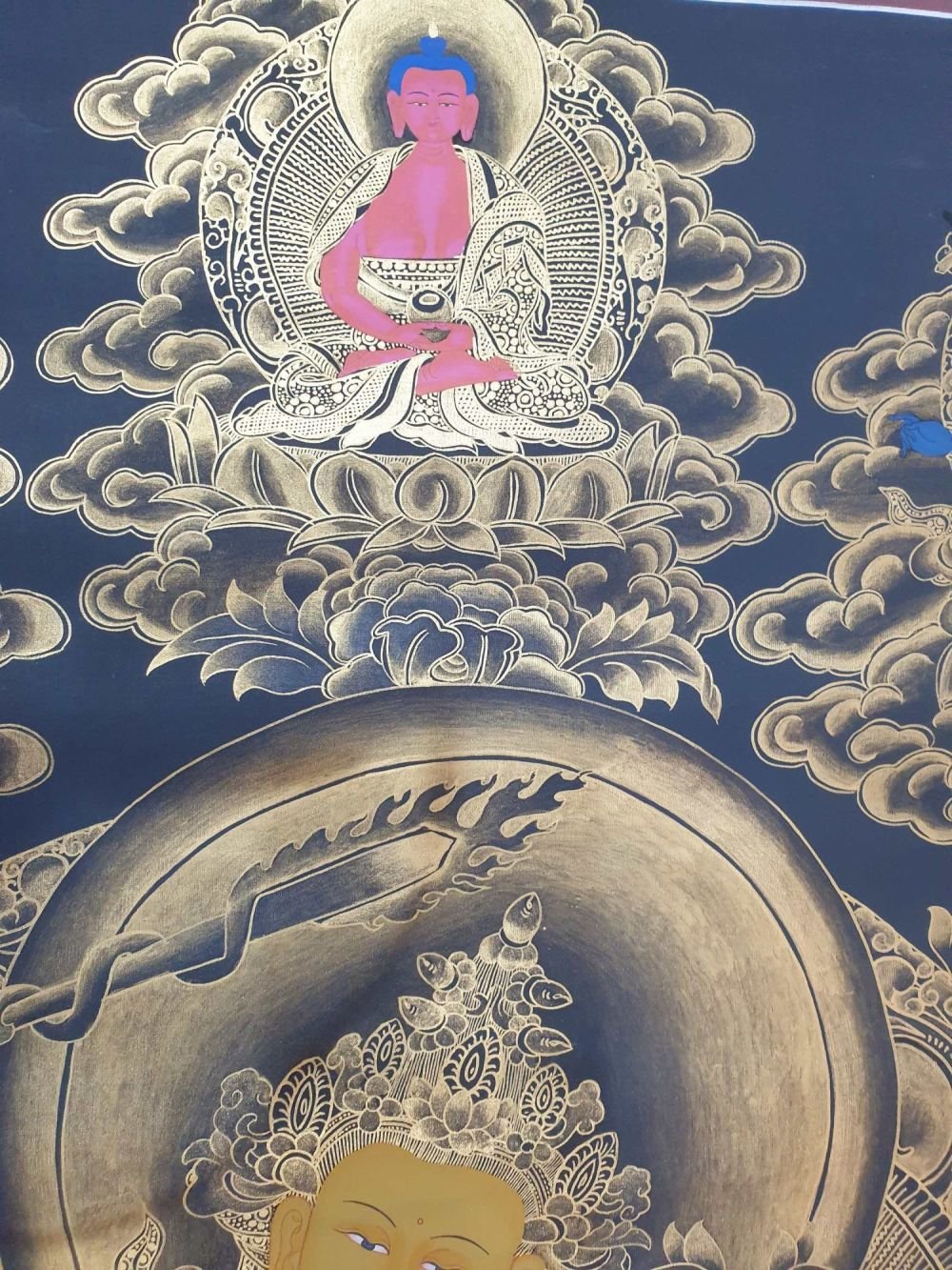 Buddhist Hand Painted Thangka of Manjushri , Wisdom Buddha, cutting through ignorance with the sword of insight
