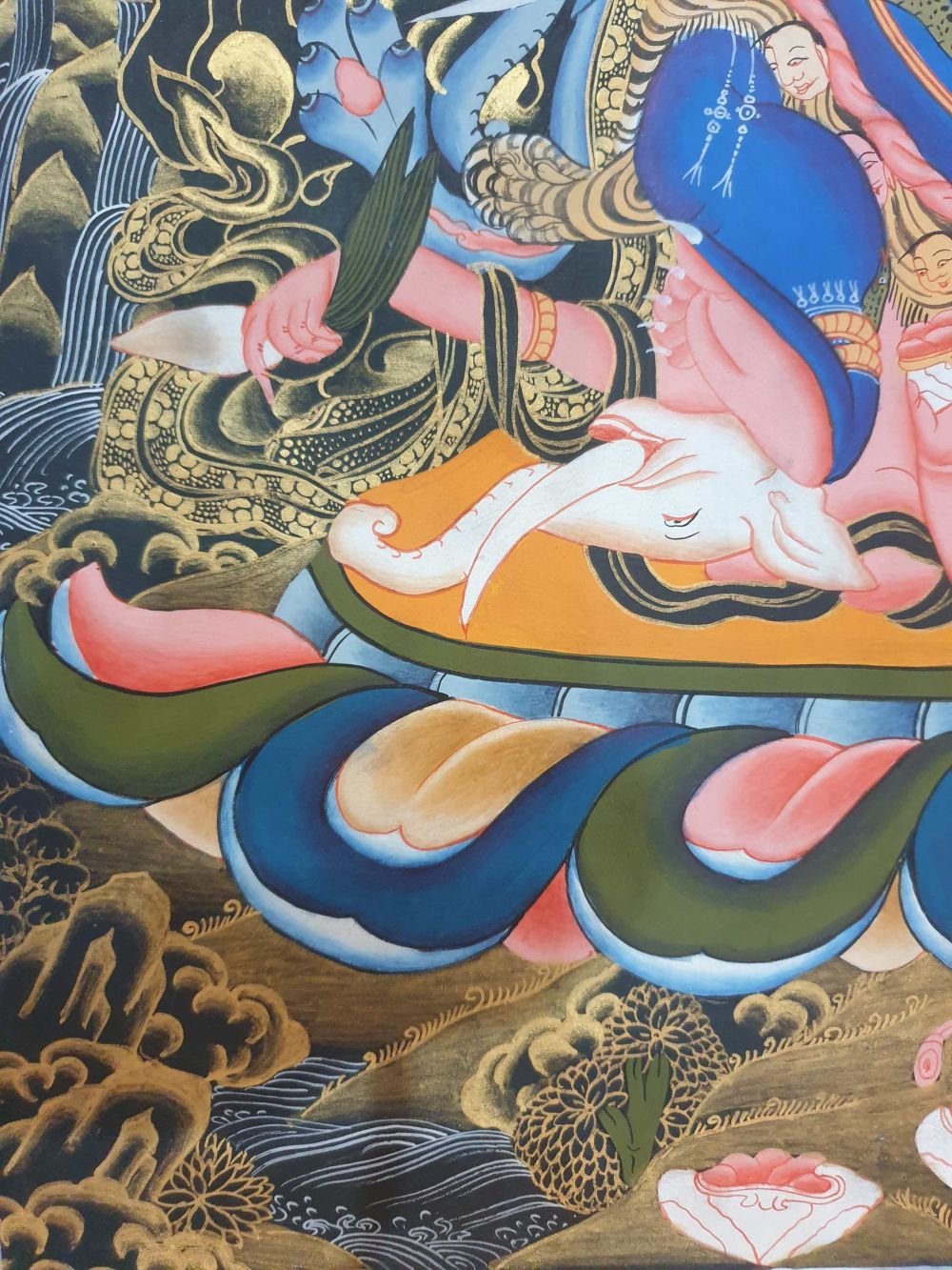 A thangka, also known as tangka, thanka, or tanka, is a vibrant and intricate Tibetan Buddhist painting that serves as a visual representation of spiritual teachings. Crafted with meticulous detail on cotton or silk appliqué, thangkas depict a wide range of subjects including Buddhist deities, sacred scenes, mandalas, and narrative stories. These sacred artworks are traditionally kept unframed and rolled up for storage, resembling ancient scrolls. To protect their delicate nature, thangkas are mounted on textile backings and often adorned with a silk cover on the front. Proper preservation in dry environments is crucial to maintain the integrity and longevity of the silk. Read More