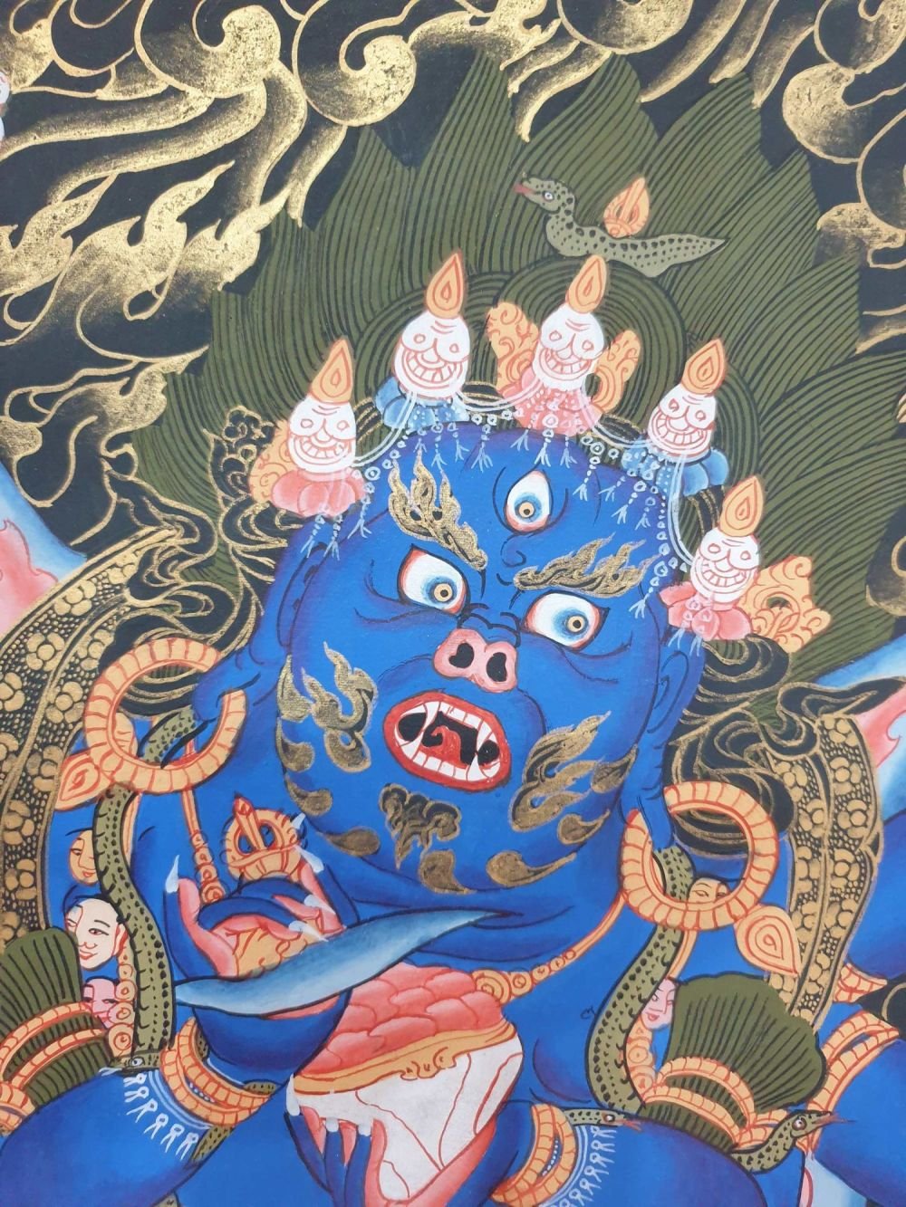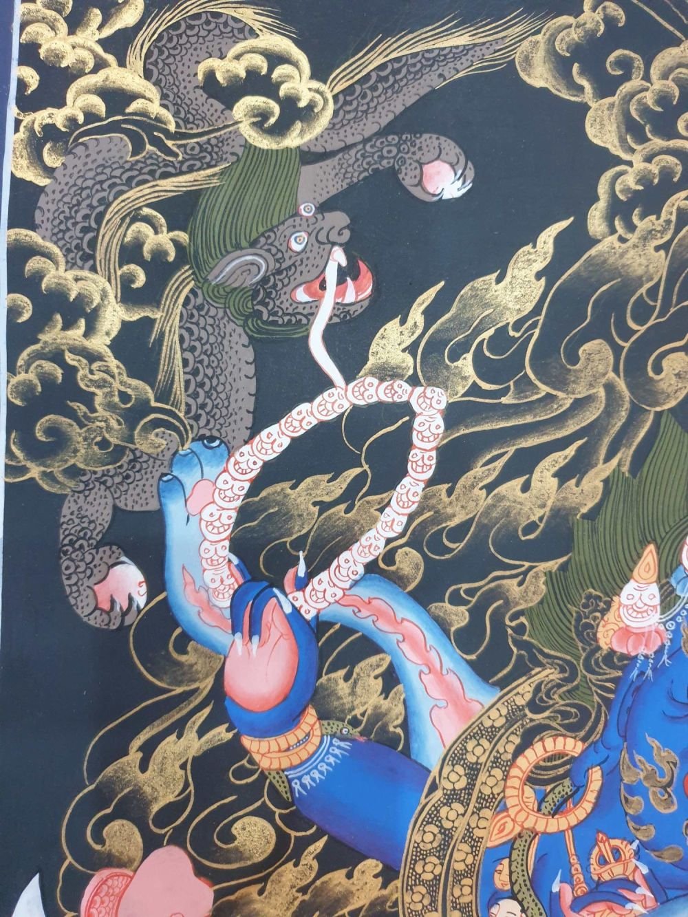 Buddhist Hand Painted Thangka of Mahakala Black , Fierce protector, destroys obstacles, guards the Dharma
