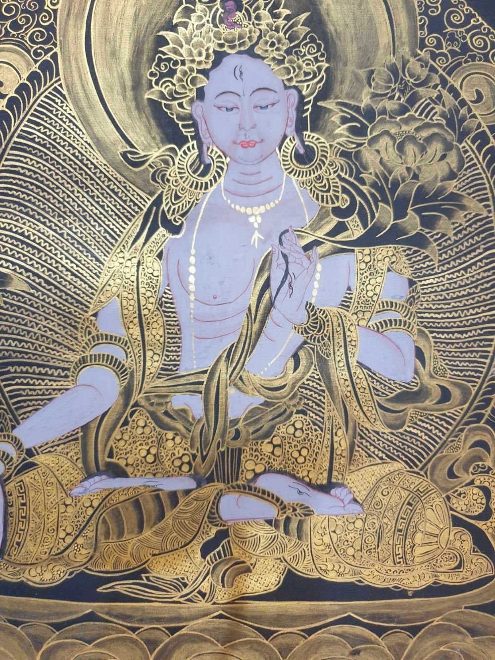 Buddhist Hand Painted Thangka of White Tara , Goddess of longevity, healing, and serene compassion