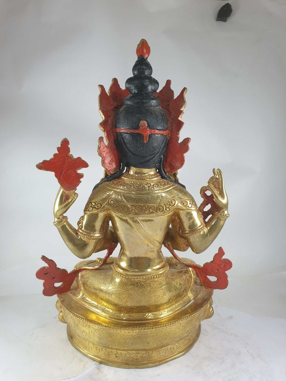 Buddhist Statue of Chenrezig, Full Gold Plated and Painted Face , Bodhisattva of Compassion, Protector of All Beings