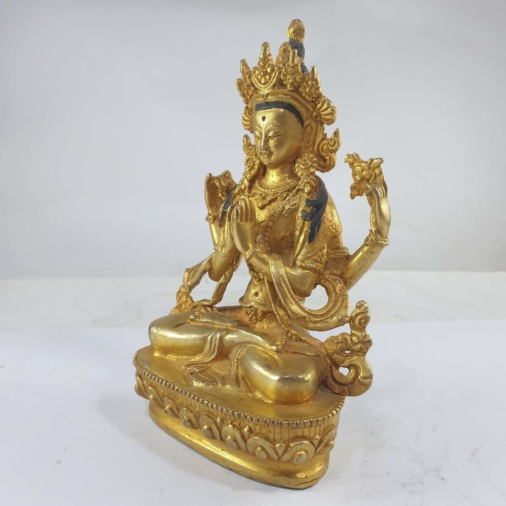 Buddhist Statue of Chenrezig Full Gold Plated , Bodhisattva of Compassion, Protector of All Beings