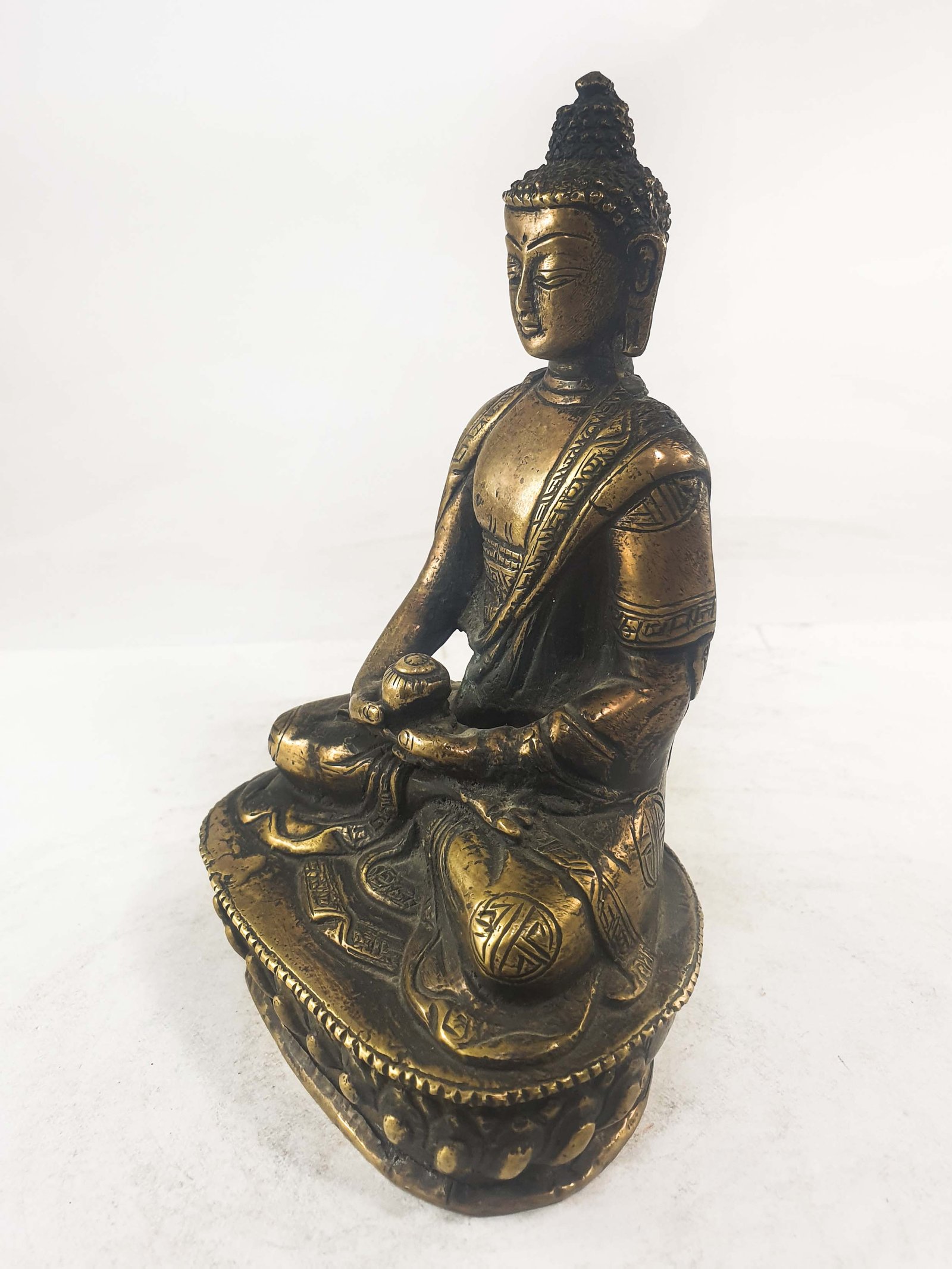 This Amitabha Buddha is made by the process of the Lost-Wax system. The lost-wax process, also known as investment casting, is a time-honored technique used to create metal sculptures. It involves several steps that have been practiced for thousands of years. Skilled artisans begin by sculpting a detailed wax model, capturing every intricate detail of the desired sculpture. The wax model is then coated with a ceramic shell, formed by multiple layers of ceramic material. Once the shell has cured, the wax is melted and drained out, leaving behind a cavity. Molten metal is poured into the cavity, creating a precise replica of the original wax model. After the metal has cooled and solidified, the ceramic shell is carefully removed, revealing the final metal sculpture. Read More