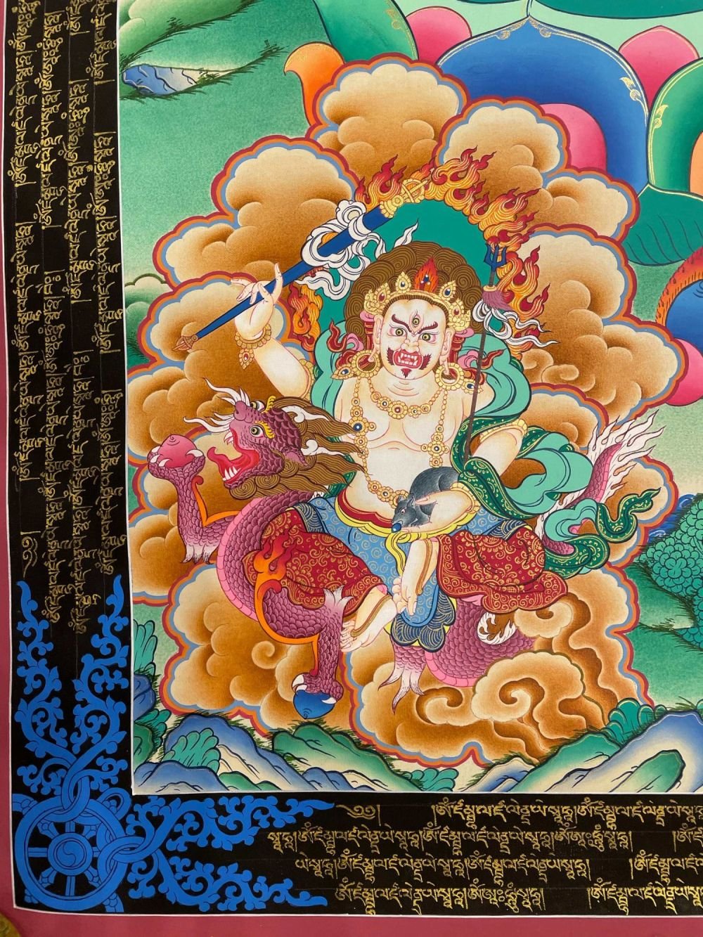 Buddist Hand Painted Thangka of Yellow Jambhala, Real Gold, Lamas Art , fostering generosity and abundance